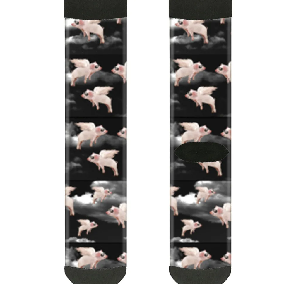 Sock Pair – Polyester – Flying Pigs Black White Pink – CREW