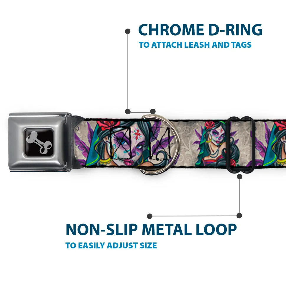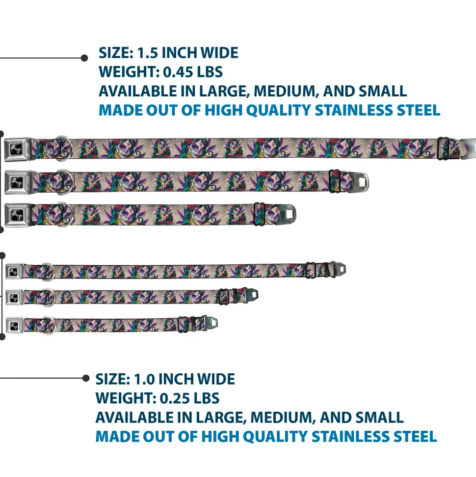Your dog will be the talk of the town when people notice they’re wearing this awesome SeatBelt Dog Collar! Made from high-density polyester and durable steel components, this collar is built to last. It features beautiful vibrant artwork. The buckle is a miniature authentic SeatBelt Buckle, so you press the center button to release the clasp. This product is Made in USA by Buckle-Down Inc. and officially licensed by Sexy Ink Girls.