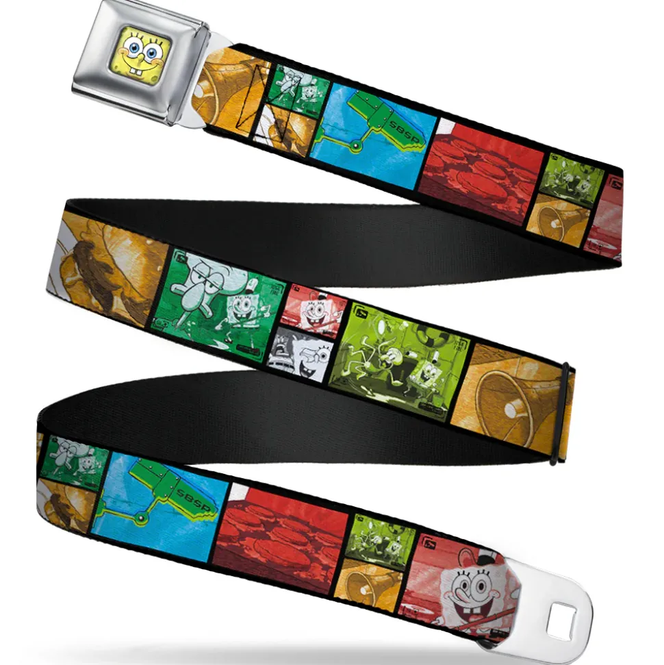 Sponge Bob 3-D Face CLOSE-UP Full Color Seatbelt Belt – Krusty Krab's Cam Scene Blocks Webbing