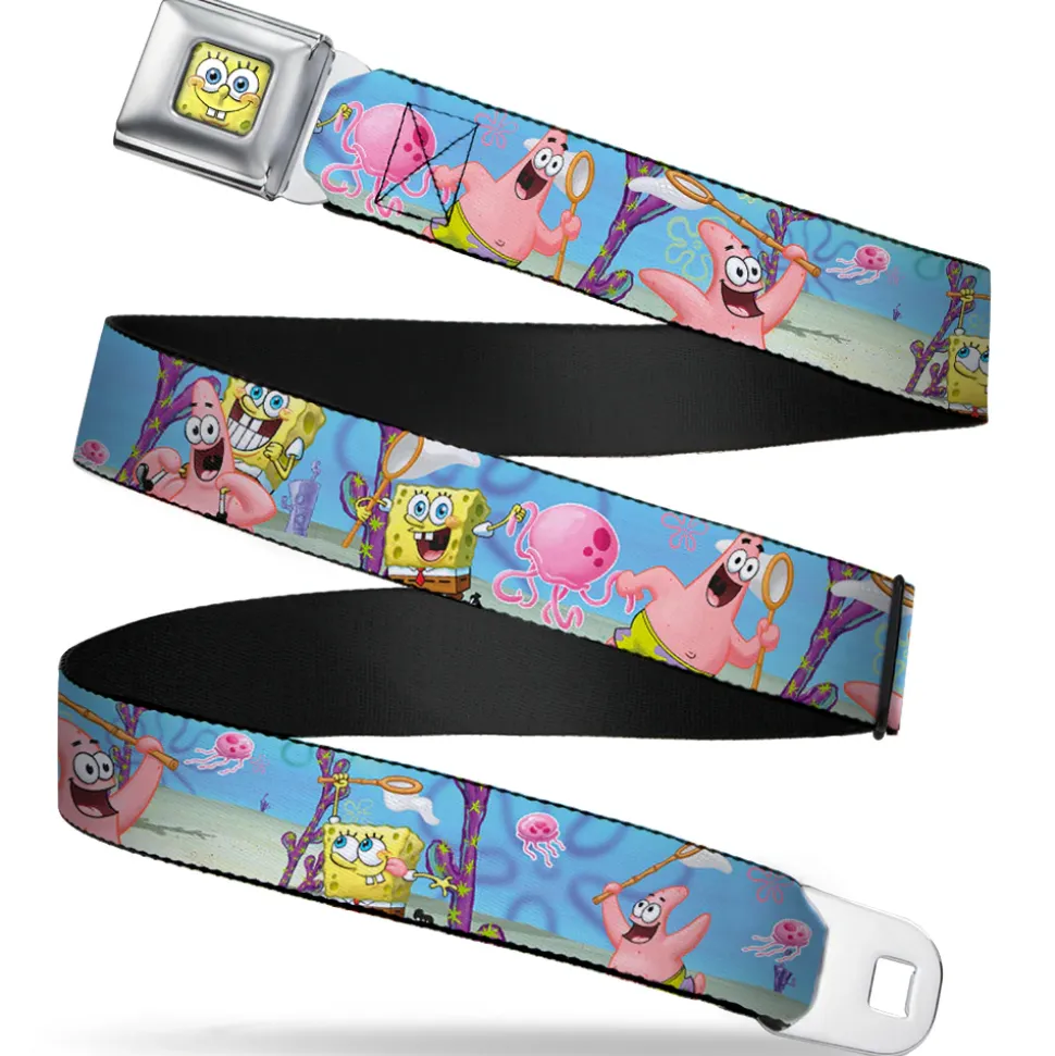 Sponge Bob 3-D Face CLOSE-UP Full Color Seatbelt Belt – SpongeBob & Patrick Starfish Jellyfishing Scenes Webbing