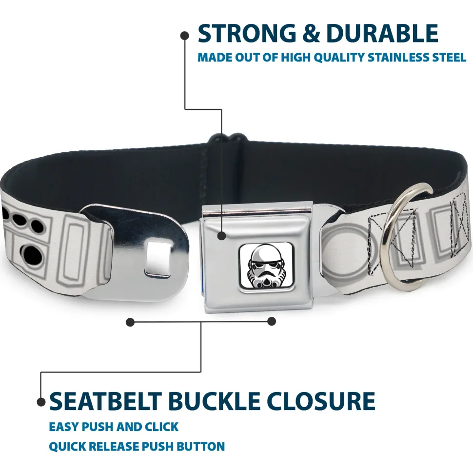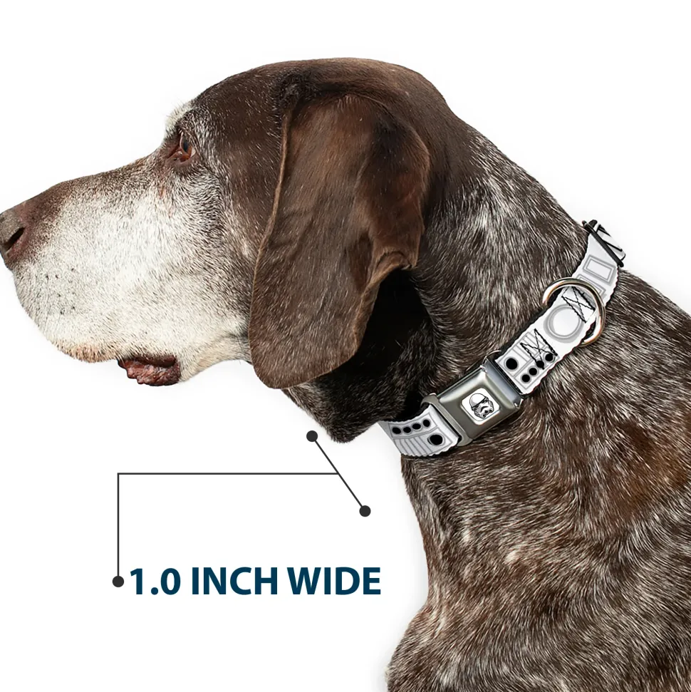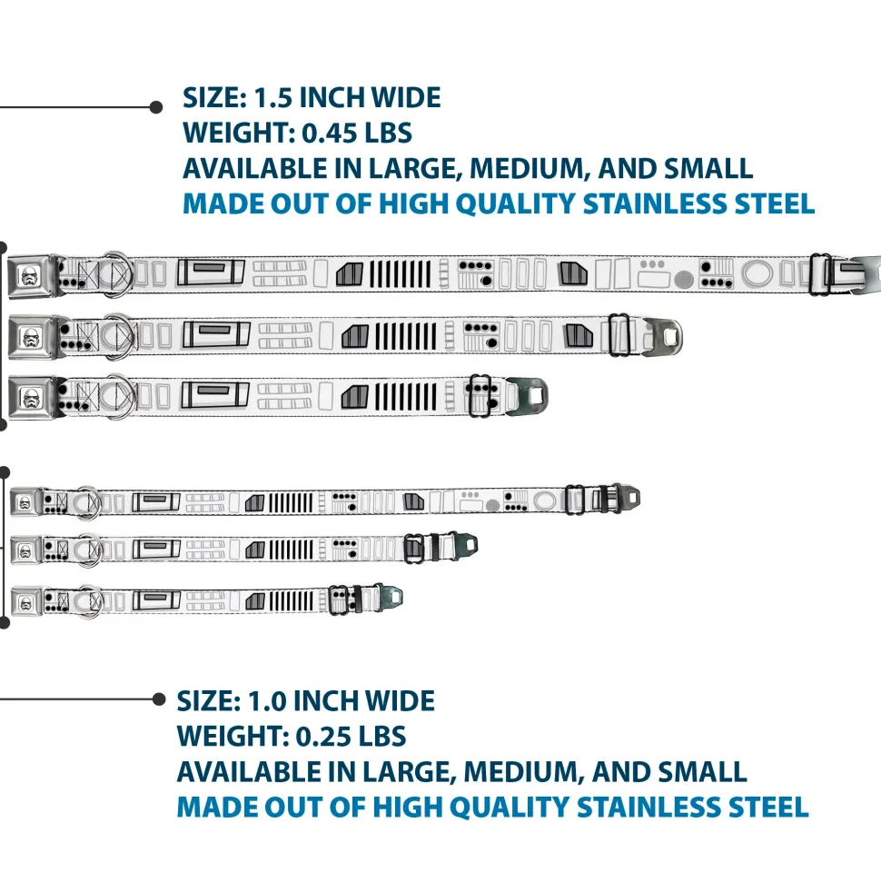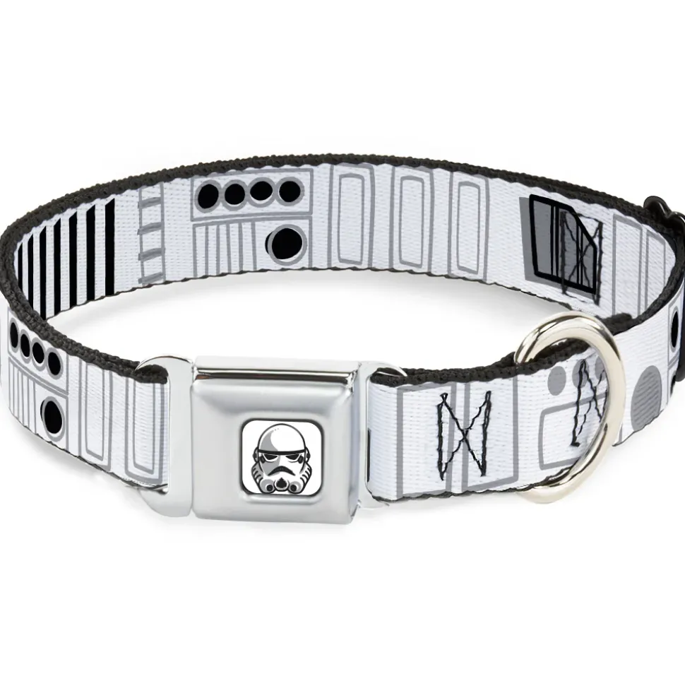 Your dog will be the talk of the town when people notice they’re wearing this awesome SeatBelt Dog Collar! Made from high-density polyester and durable steel components, this collar is built to last. It features beautiful vibrant artwork. The buckle is a miniature authentic SeatBelt Buckle, so you press the center button to release the clasp. This product is Made in USA by Buckle-Down Inc. and officially licensed by Star Wars.