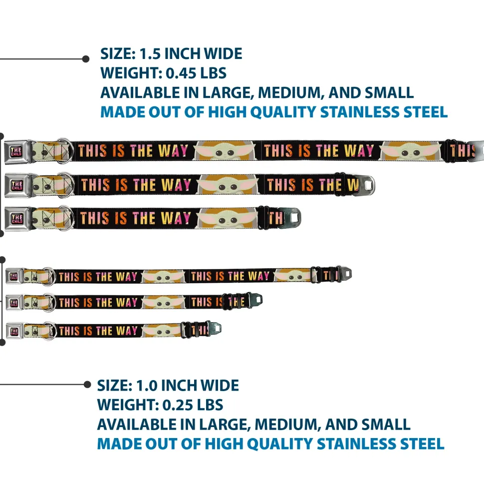Your dog will be the talk of the town when people notice they’re wearing this awesome SeatBelt Dog Collar! Made from high-density polyester and durable steel components, this collar is built to last. It features beautiful vibrant artwork. The buckle is a miniature authentic SeatBelt Buckle, so you press the center button to release the clasp. This product is Made in USA by Buckle-Down Inc. and officially licensed by Star Wars.