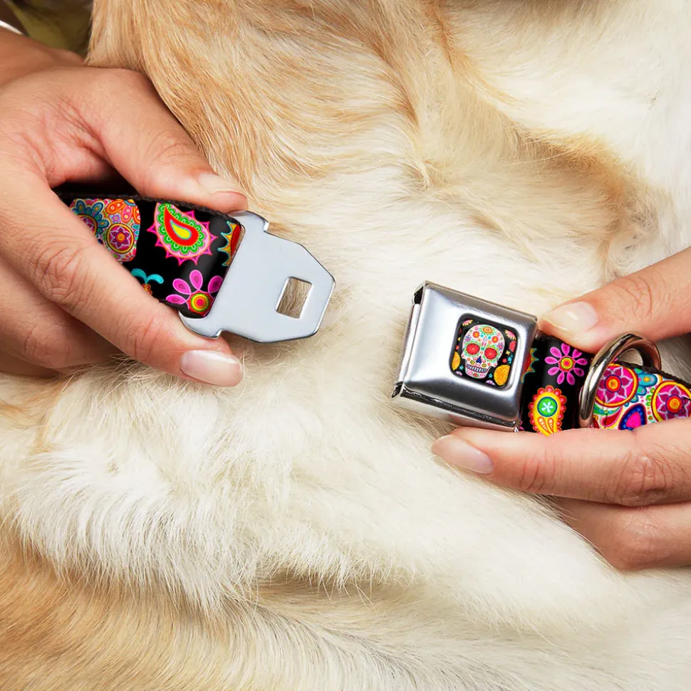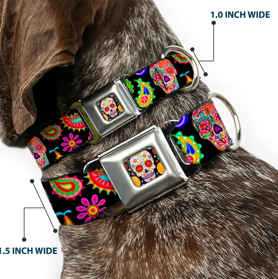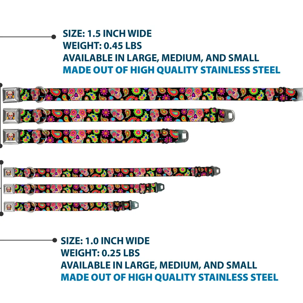 Sugar Skull Starburst Full Color Black/Multi Color Seatbelt Buckle Collar – Bobo Sugar Skull/Paisley Black/Multi Color