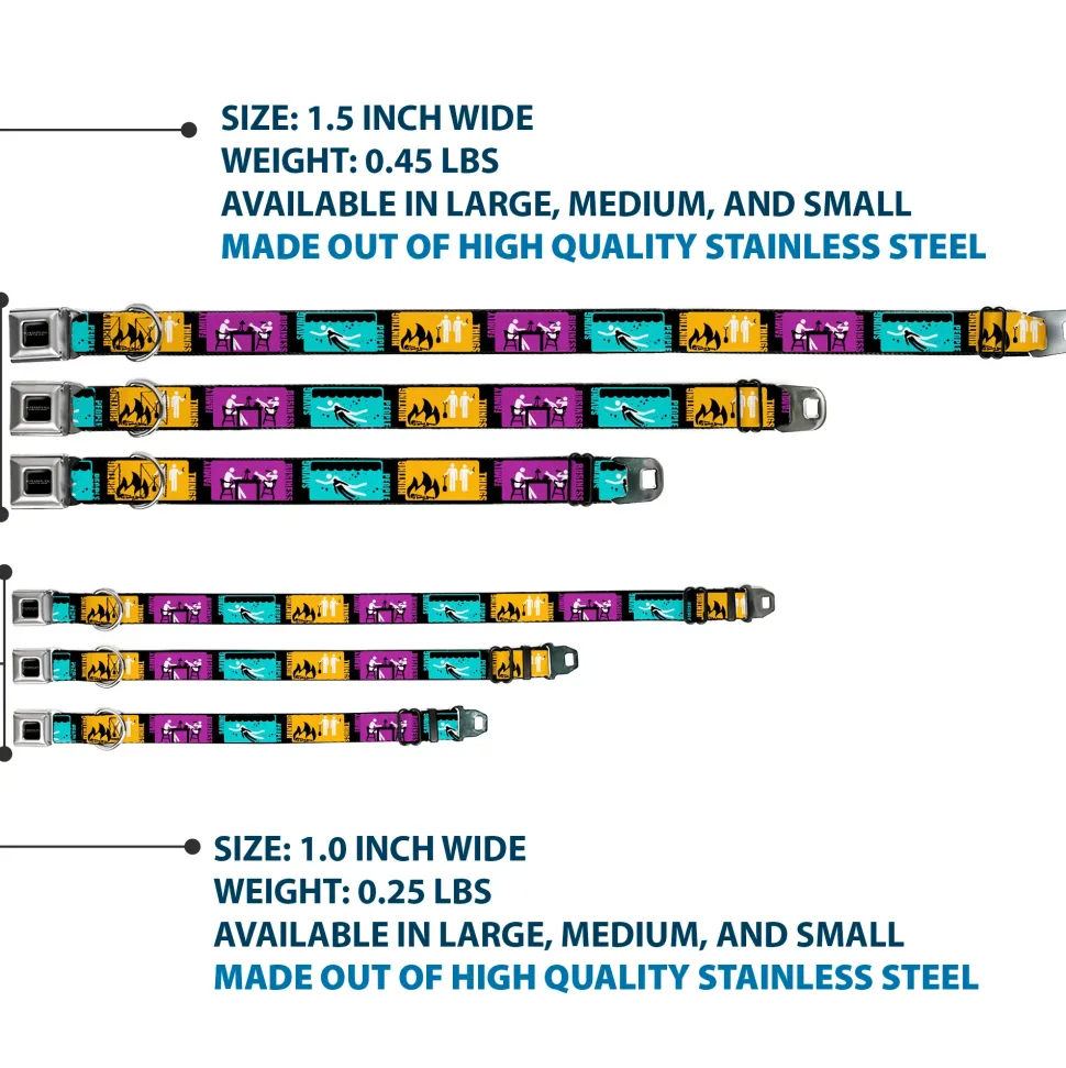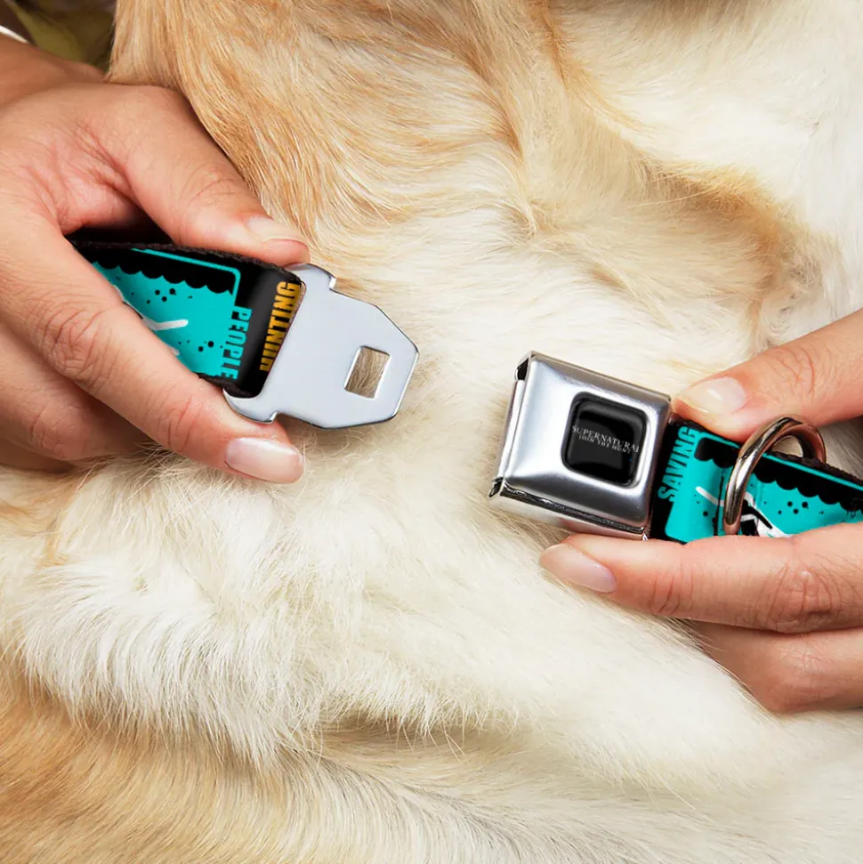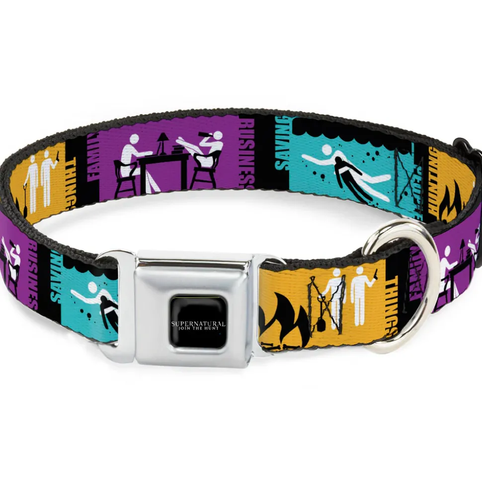 Your dog will be the talk of the town when people notice they’re wearing this awesome SeatBelt Dog Collar! Made from high-density polyester and durable steel components, this collar is built to last. It features beautiful vibrant artwork. The buckle is a miniature authentic SeatBelt Buckle, so you press the center button to release the clasp. This product is Made in USA by Buckle-Down Inc. and officially licensed by Supernatural.