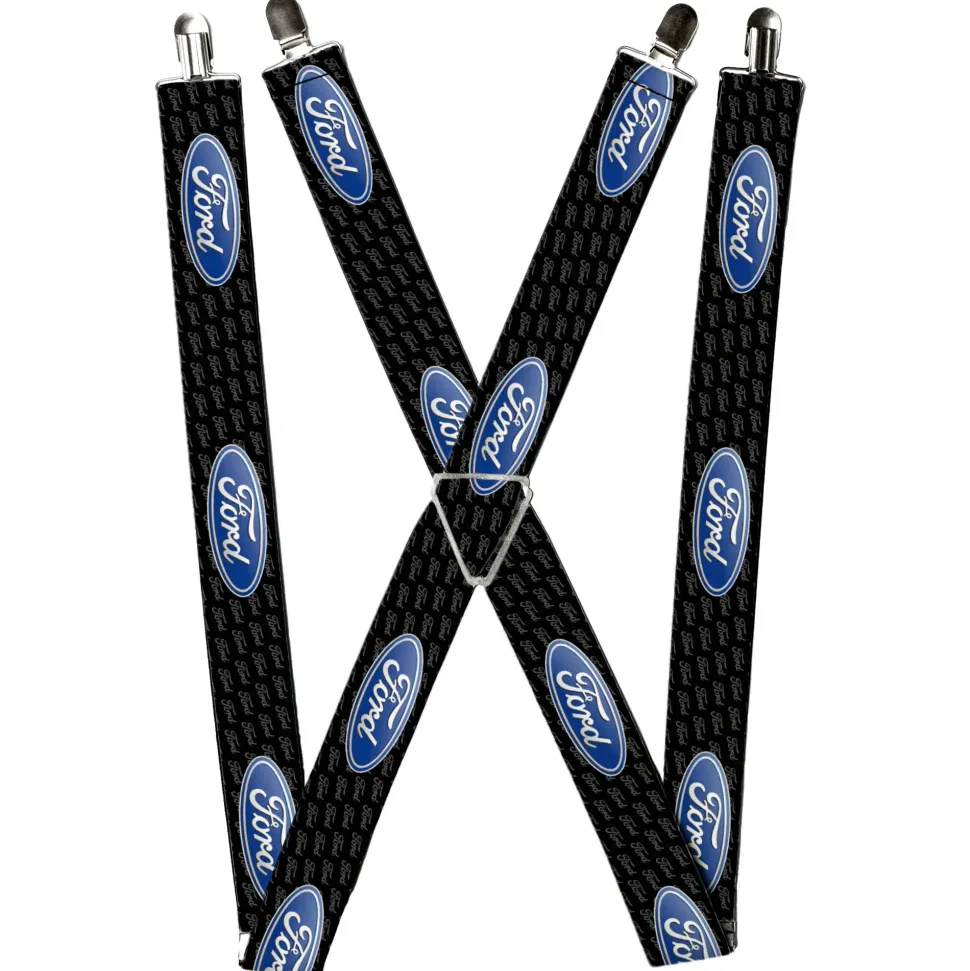 These suspenders are a great way to make a fashion statement! They are elastic with steel-plated hardware, 1.5 inch wide, and adjust to fit most people. This product is Assembled in the USA by Buckle-Down and Officially Licensed by Ford.