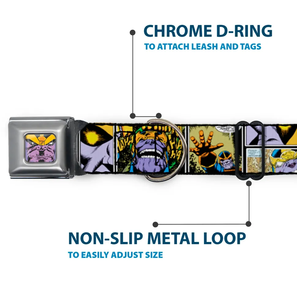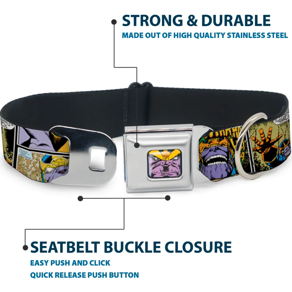 Your dog will be the talk of the town when people notice they’re wearing this awesome SeatBelt Dog Collar! Made from high-density polyester and durable steel components, this collar is built to last. It features beautiful vibrant artwork. The buckle is a miniature authentic SeatBelt Buckle, so you press the center button to release the clasp. This product is Made in USA by Buckle-Down Inc. and officially licensed by Marvel Comics.