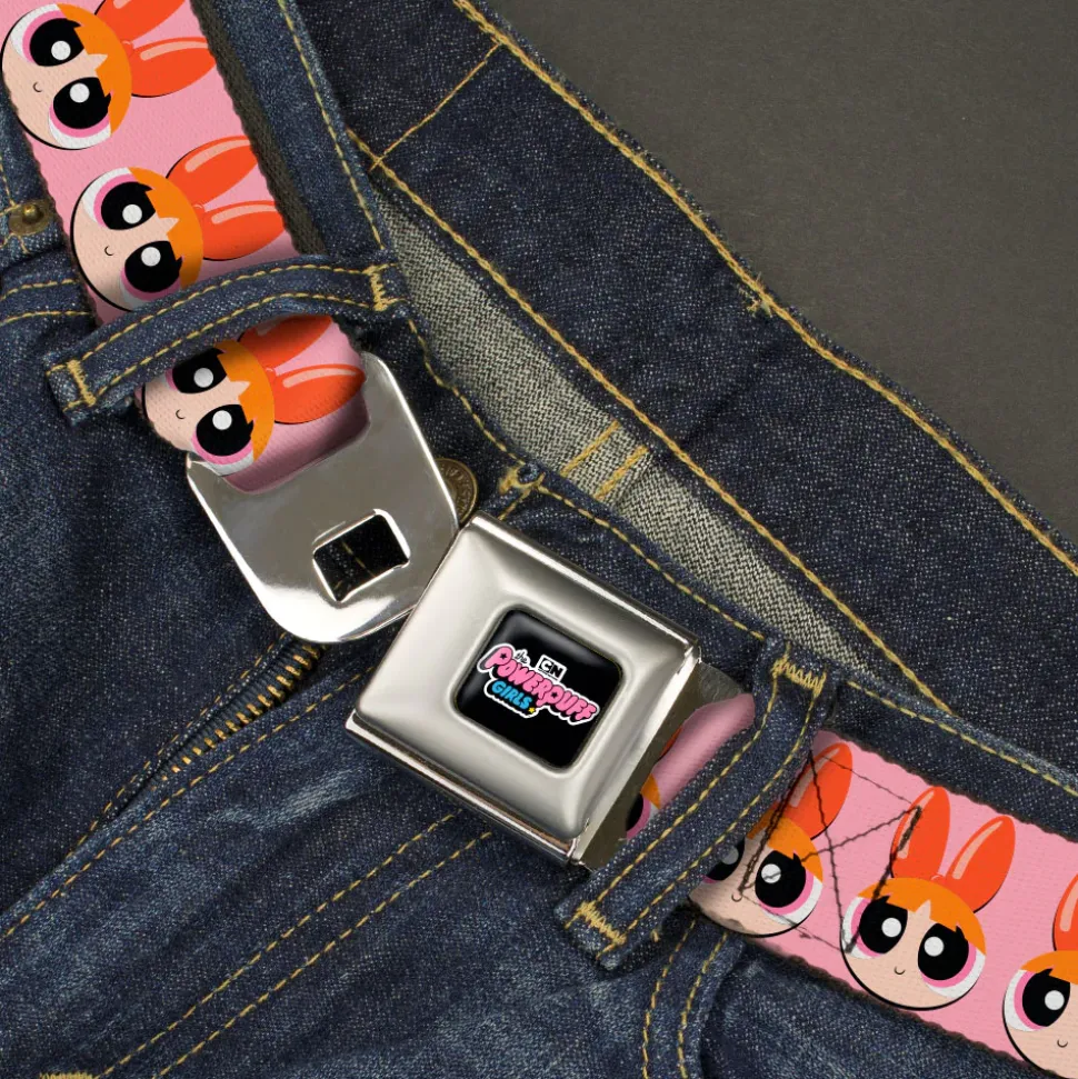 THE POWERPUFF GIRLS Animated Series Title Logo Full Color Black Seatbelt Belt – The Powerpuff Girls Blossom Face Close-Up Pink Webbing