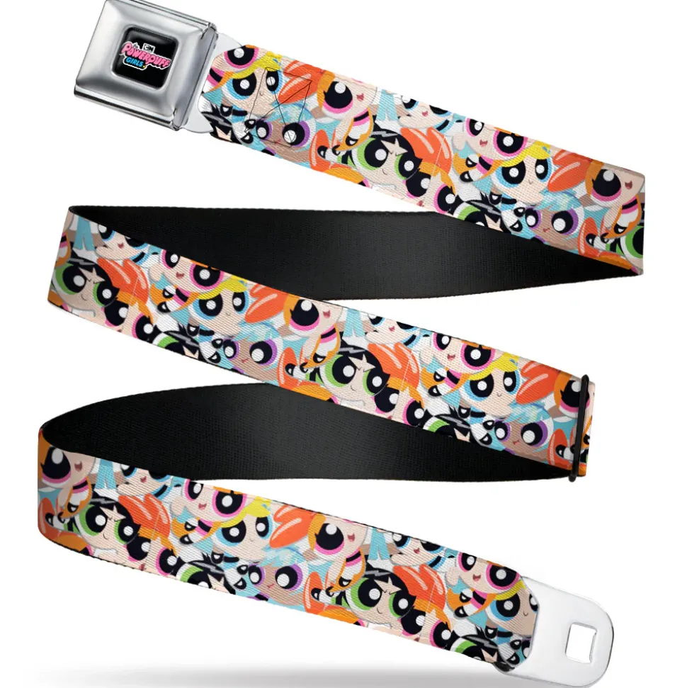 THE POWERPUFF GIRLS Animated Series Title Logo Full Color Black Seatbelt Belt – The Powerpuff Girls Expressions Stacked Webbing