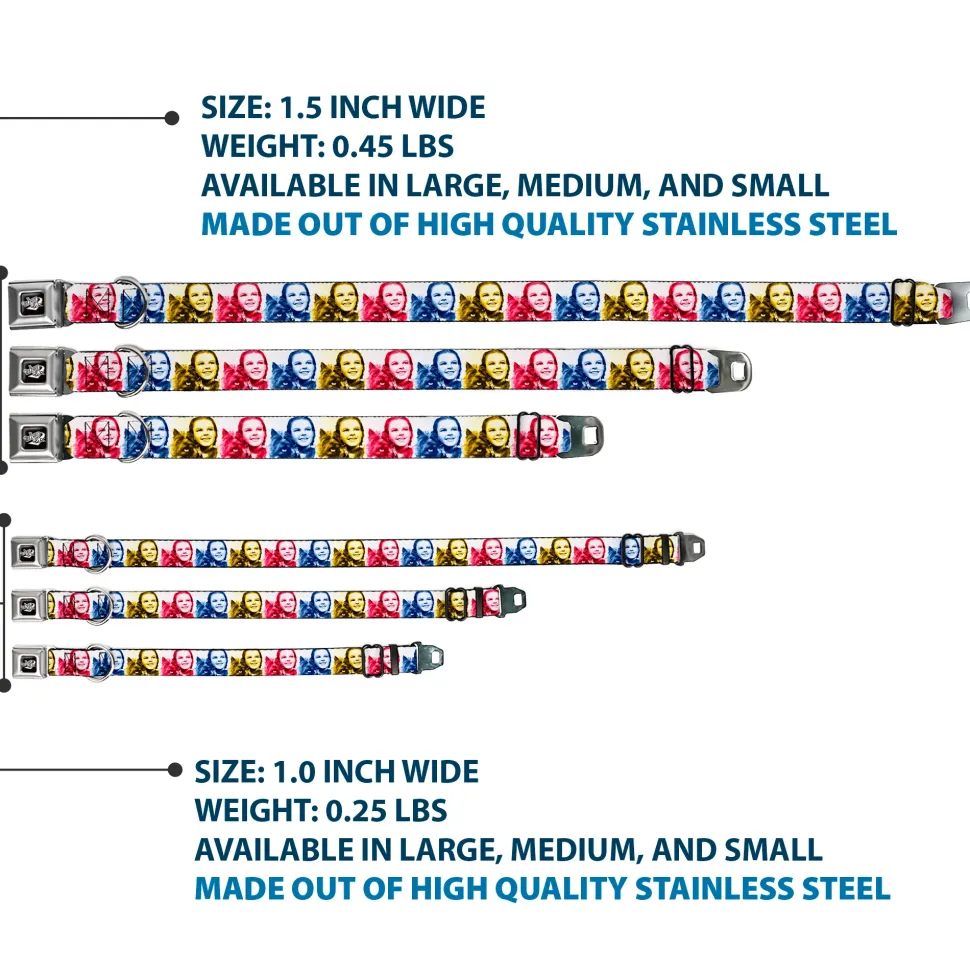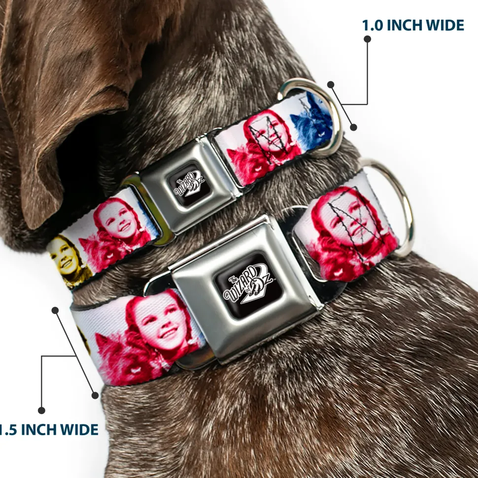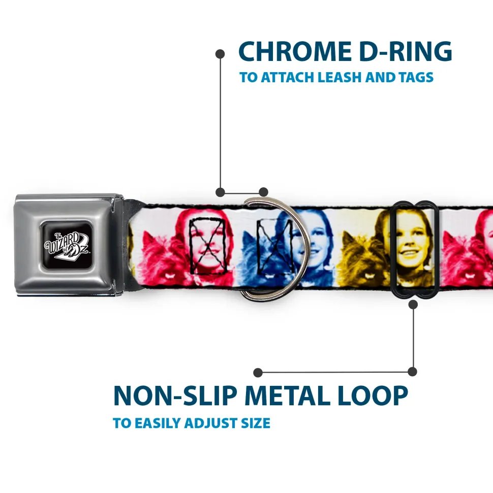 THE WIZARD OF OZ Title Logo Full Color Black/White Seatbelt Buckle Collar – The Wizard of Oz Dorothy and Toto Pose Blocks Blues/Yellows/Reds