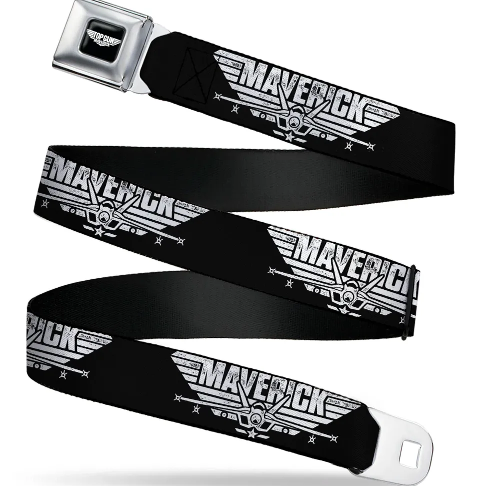 TOP GUN Title Logo Full Color Black/White Seatbelt Belt – TOP GUN MAVERICK Fighter Jet Logo Weathered Black/White Webbing