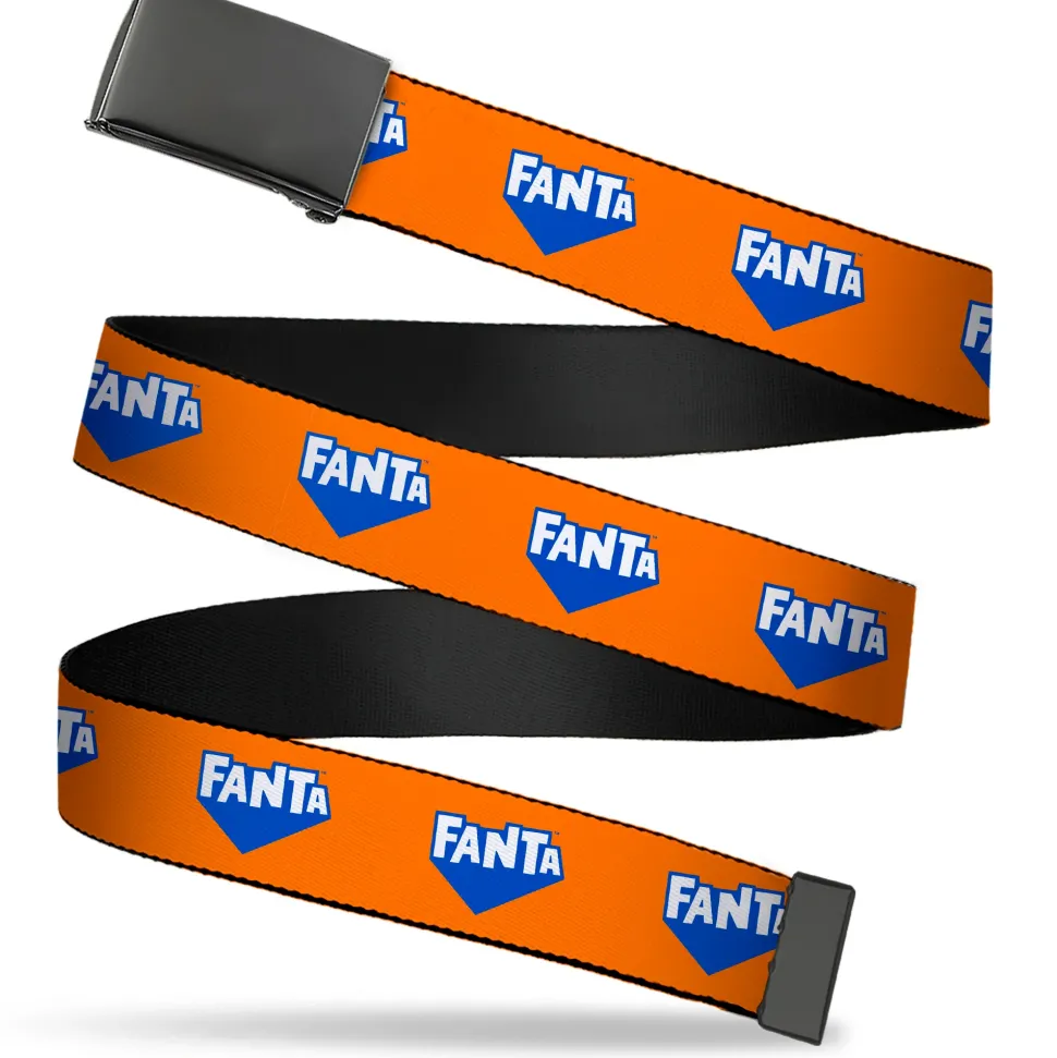 Web Belt Blank Black Buckle - FANTA Logo Orange/Blue/White Webbing