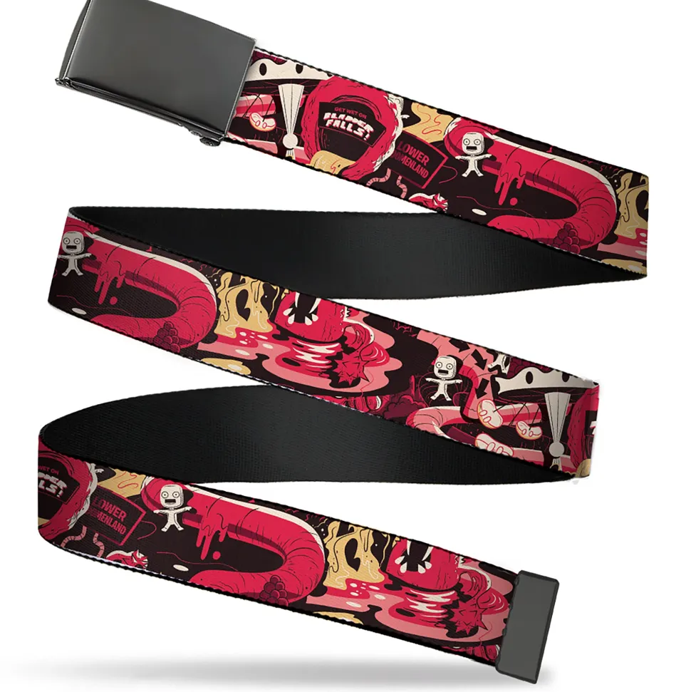 Web Belt Blank Black Buckle – Rick and Morty Anatomy Park Collage Reds/Black Webbing