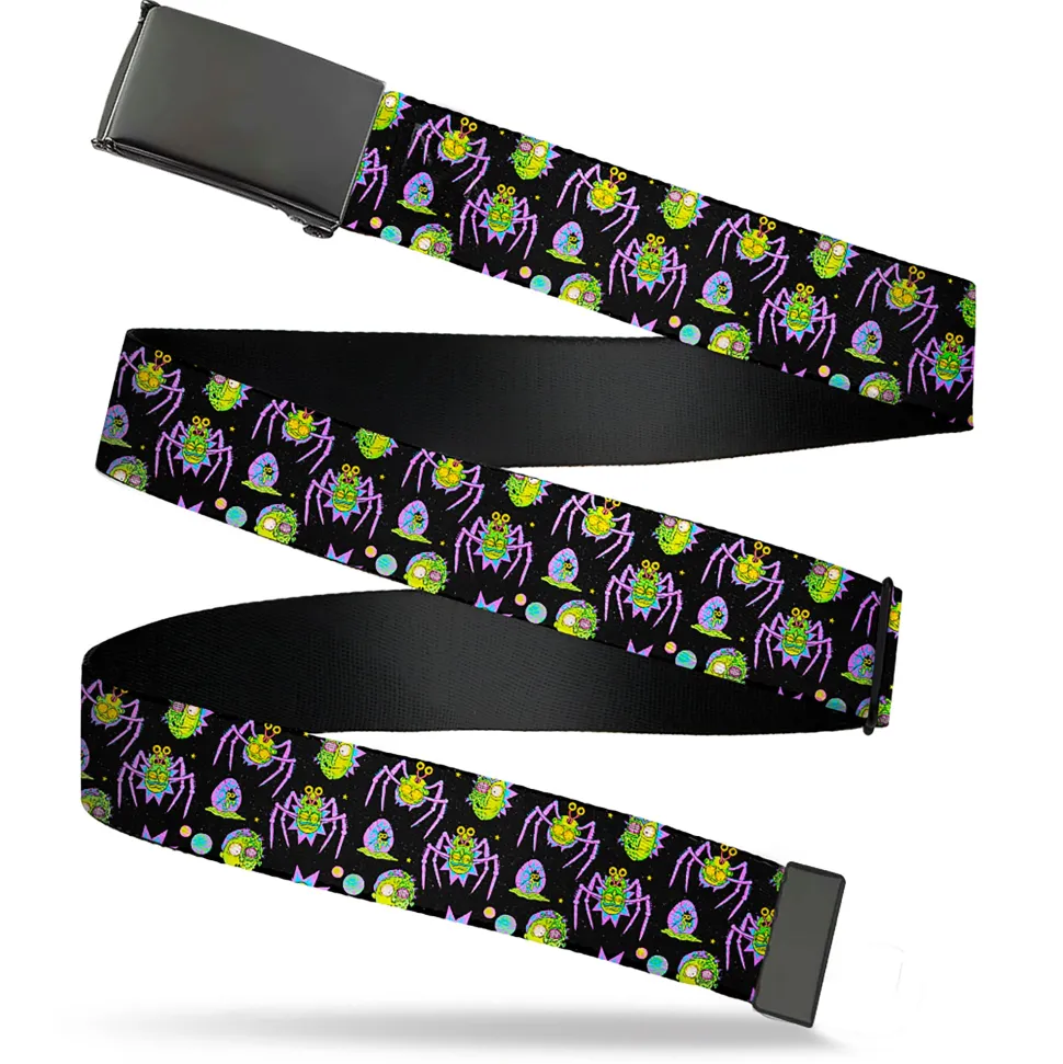 Web Belt Blank Black Buckle – Rick and Morty Mutants and Things Collage Black Webbing