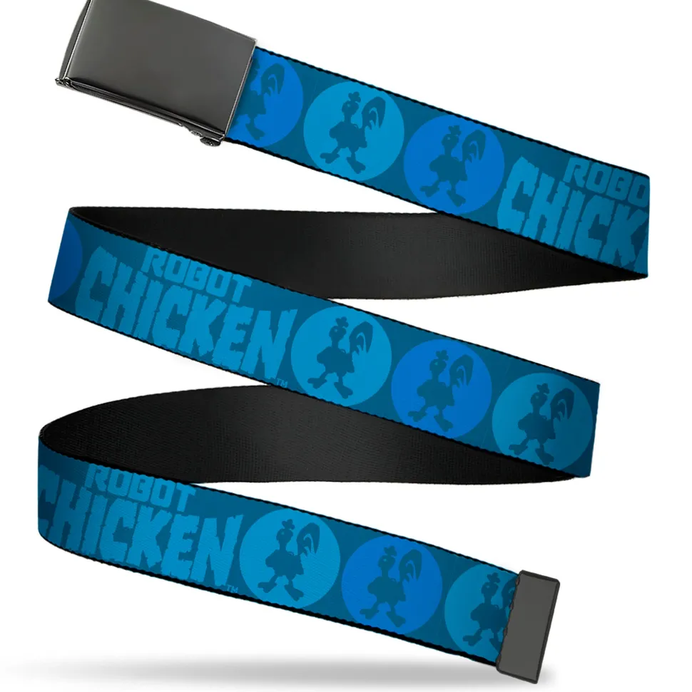 Web Belt Blank Black Buckle - ROBOT CHICKEN Title Logo and Chicken Silhouette Bullseye Blues Webbing