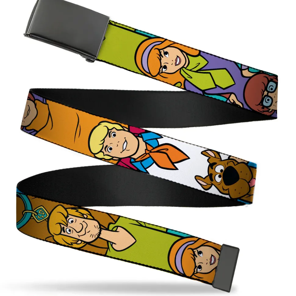 Web Belt Blank Black Buckle – Scooby Doo 5-Character Poses Stack Webbing