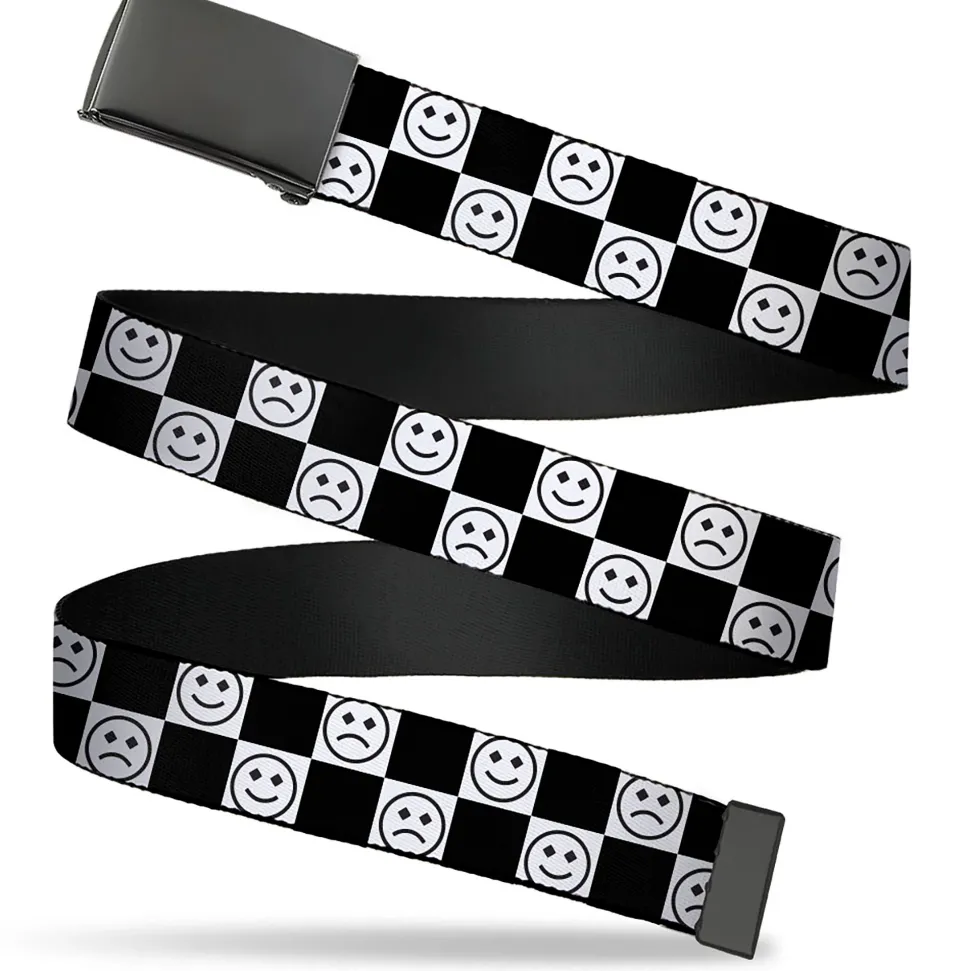 Web Belt Blank Black Buckle - Smiley Sad Face Checker Black/White Webbing