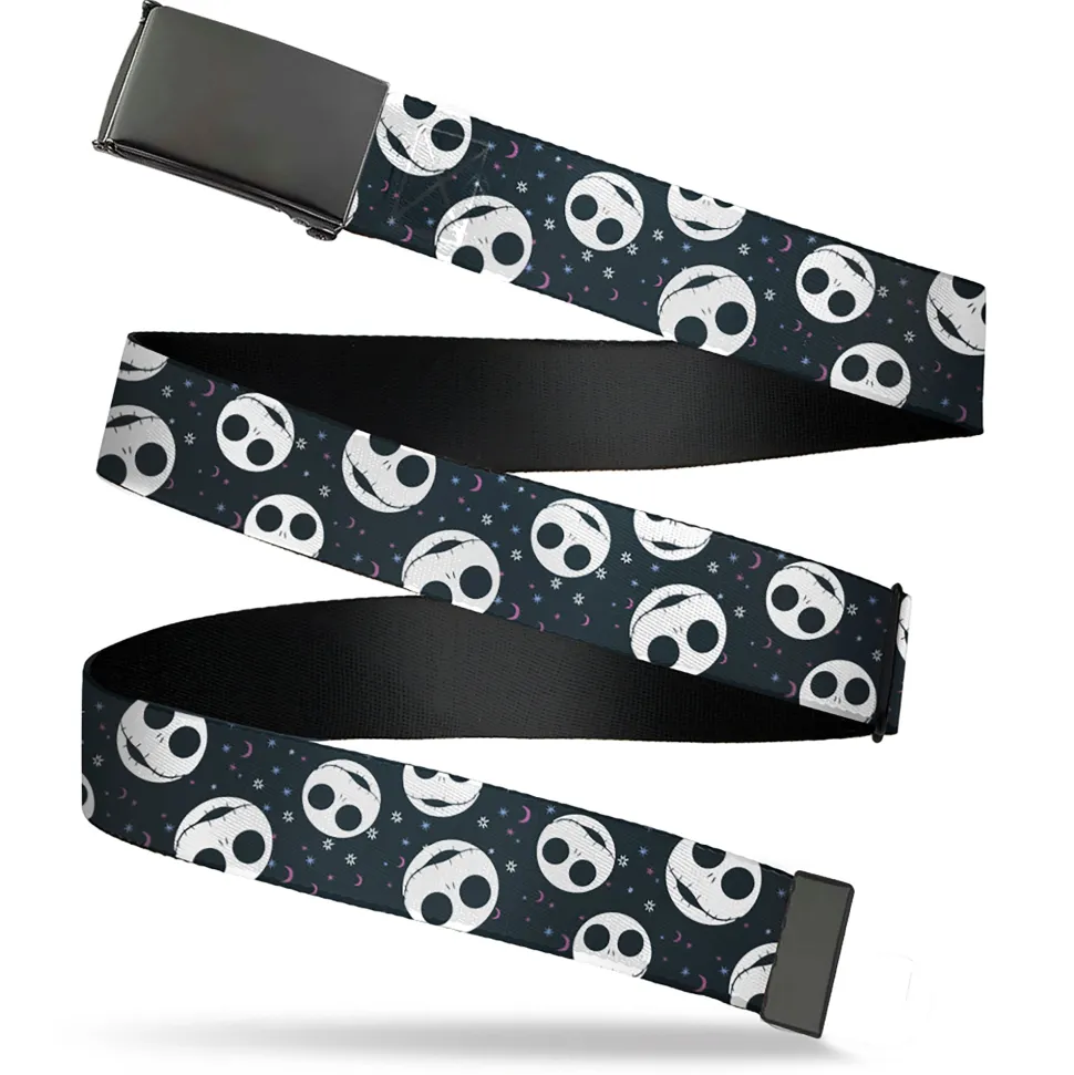 Web Belt Blank Black Buckle - The Nightmare Before Christmas Smiling Jack Moon and Stars Black Webbing