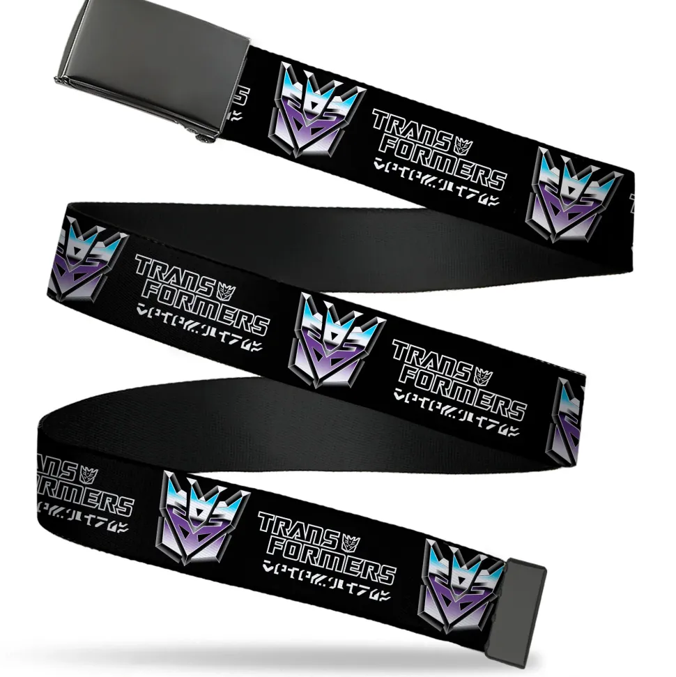 Web Belt Blank Black Buckle – TRANSFORMERS Decepticons Cybertronian Icon Black/Grays/Purples Webbing