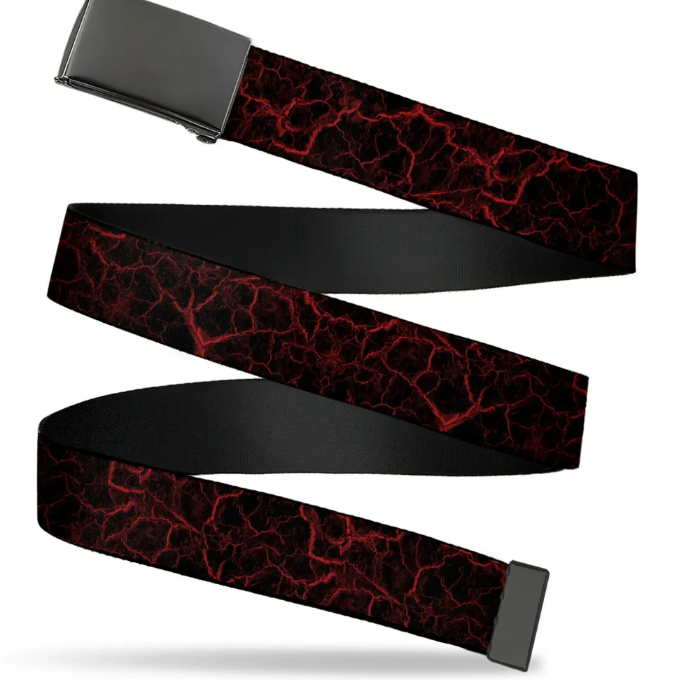 Web Belt Clasp Buckle – Marble Black/Red Webbing