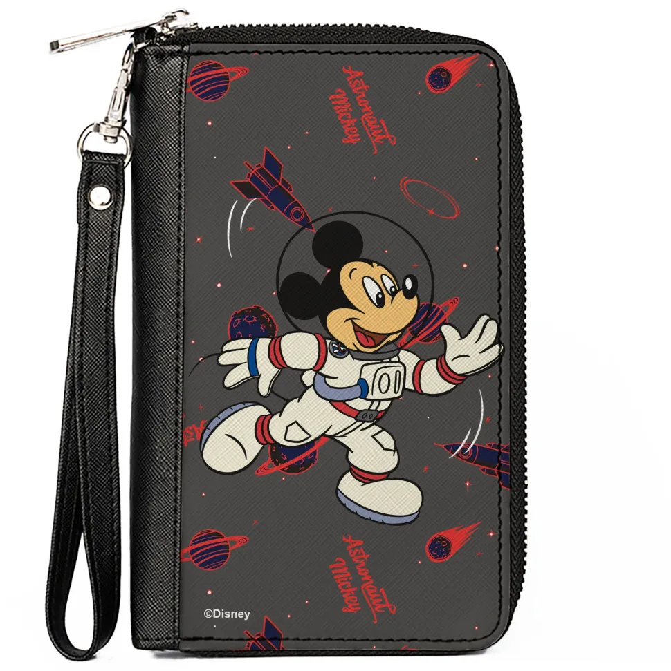 Women's PU Zip Around Wallet Rectangle - Astronaut Mickey in Space Pose Gray Red Blue
