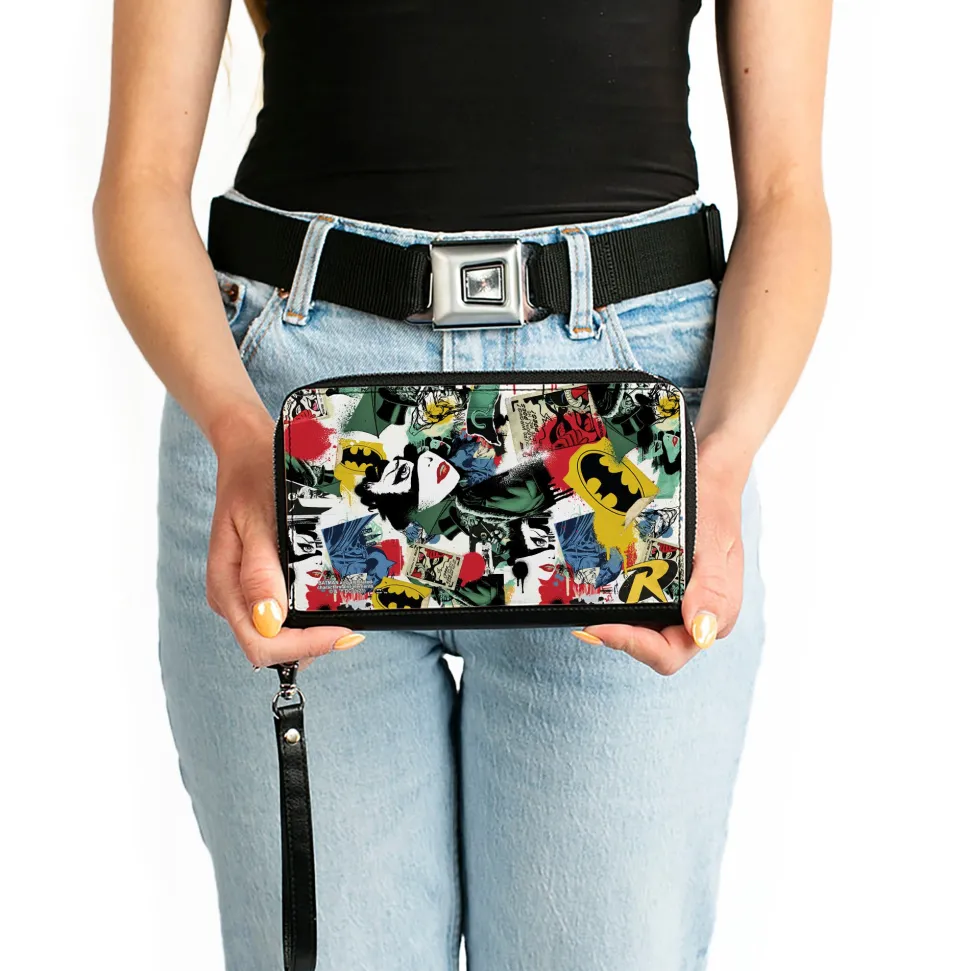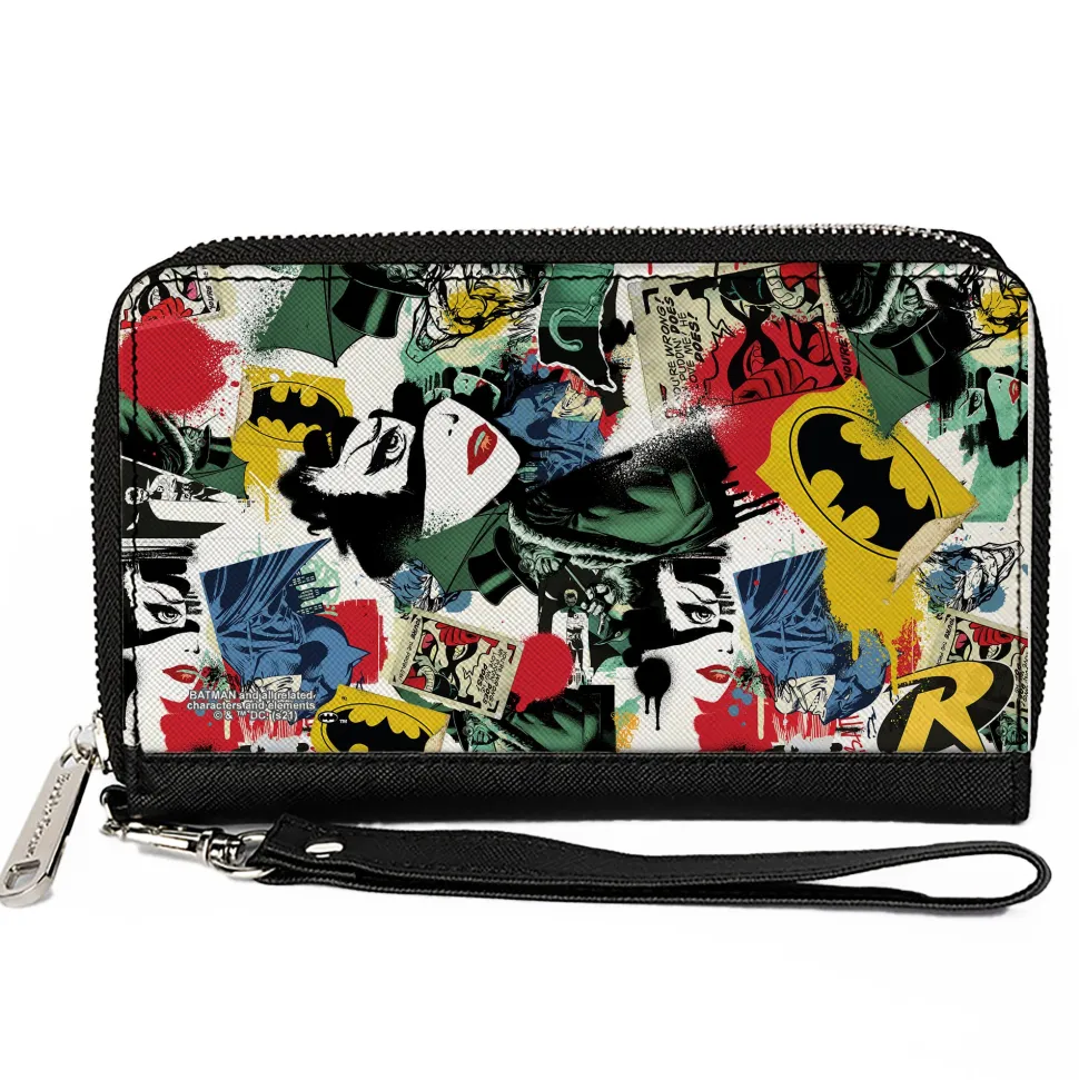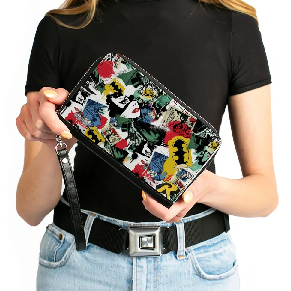 Women's PU Zip Around Wallet Rectangle - Batman and Gotham City Villains Graffiti Collage White Multi Color