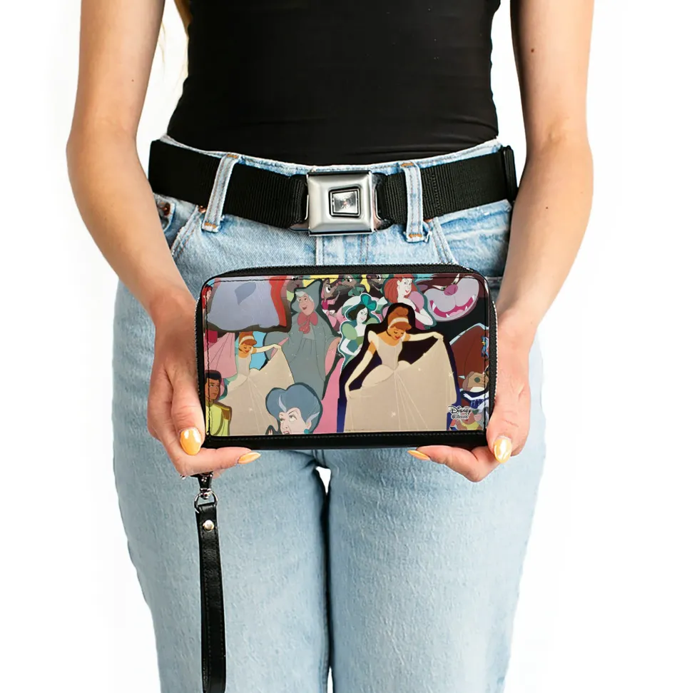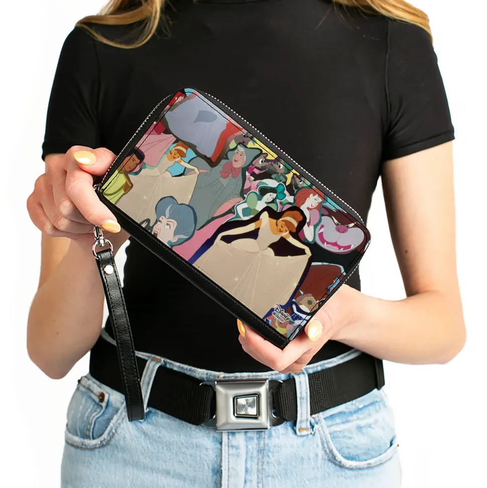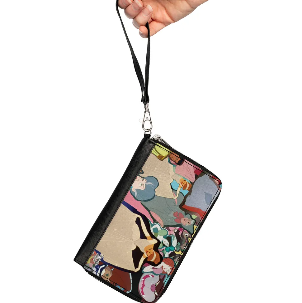 Women's PU Zip Around Wallet Rectangle - Cinderella Characters Collage Blues White