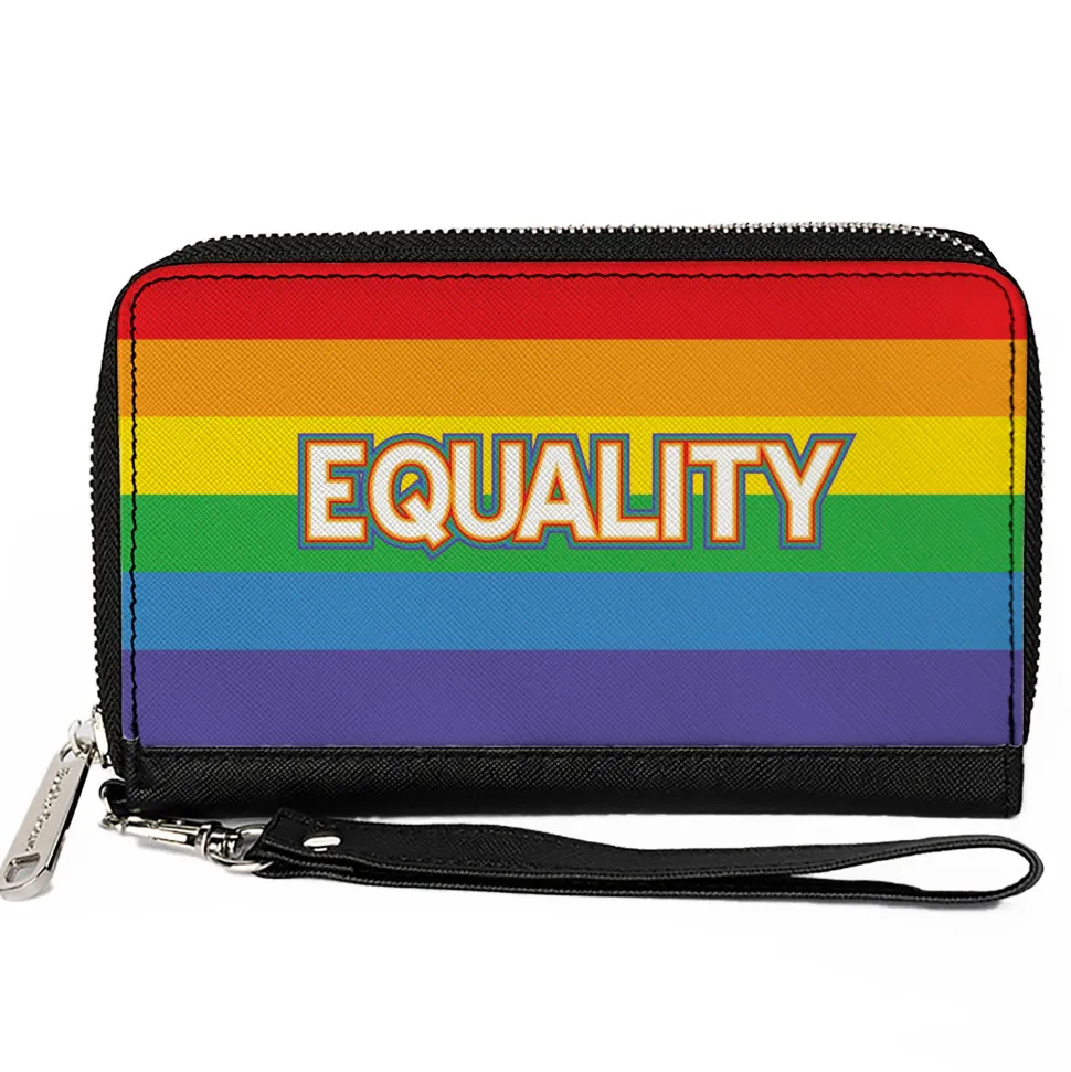 Women's PU Zip Around Wallet Rectangle – EQUALITY Stripe Rainbow White