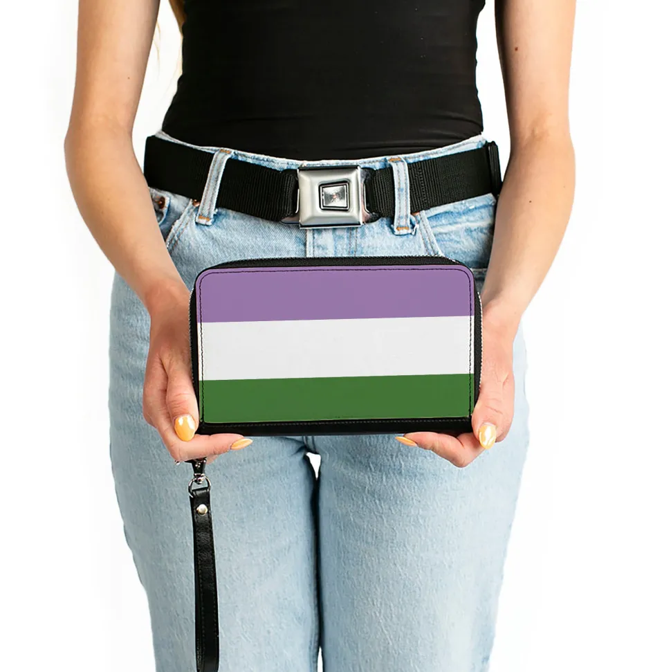Women's PU Zip Around Wallet Rectangle - Flag Genderqueer Lavender White Green