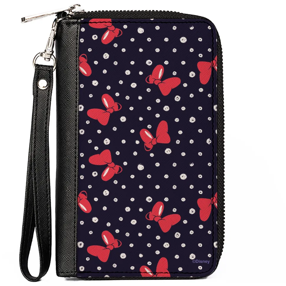 Women's PU Zip Around Wallet Rectangle – Minnie Mouse Bow and Dots Scattered Black Red White