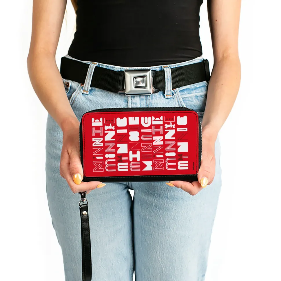 Women's PU Zip Around Wallet Rectangle – Minnie Mouse MINNIE Typography Red White