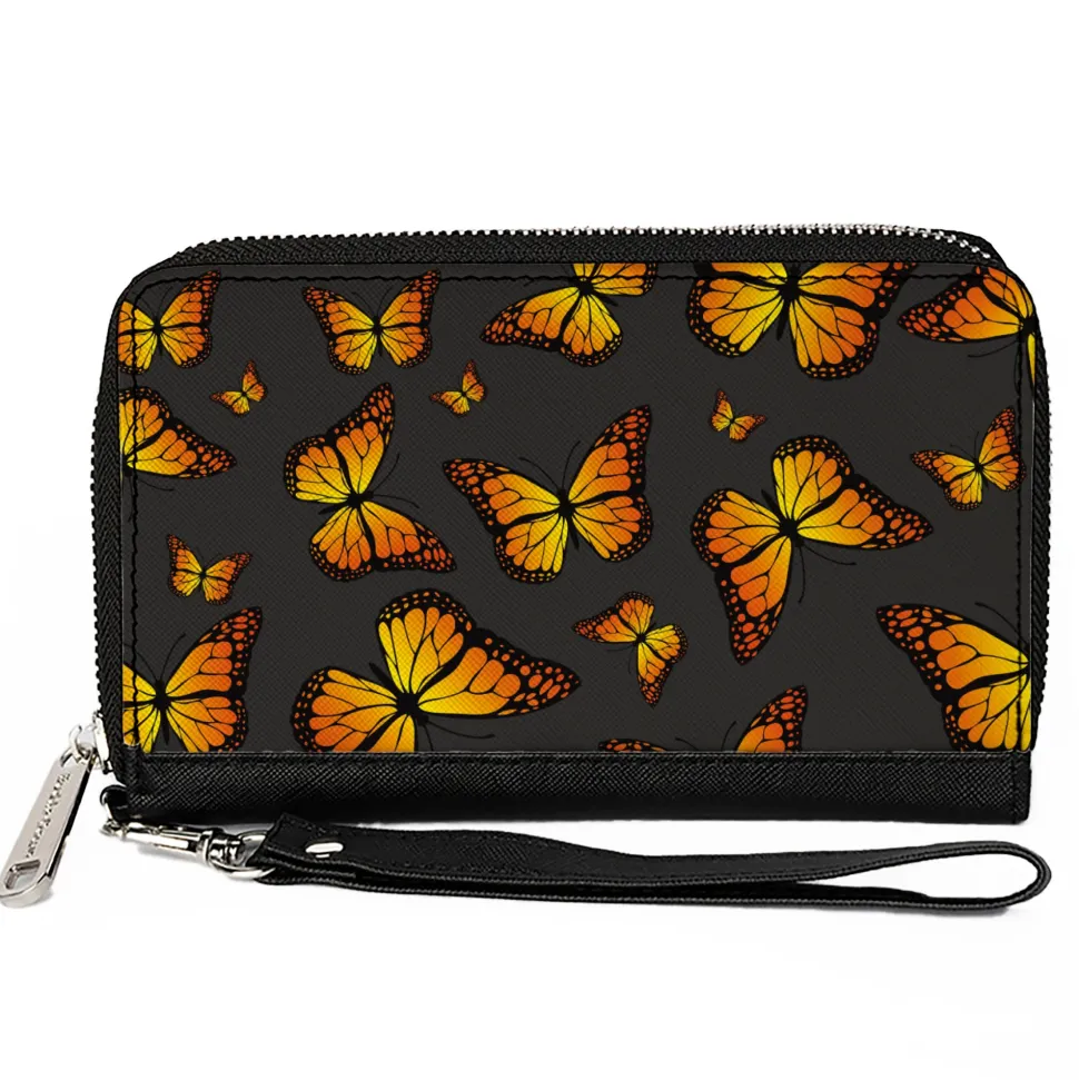 Women's PU Zip Around Wallet Rectangle - Monarch Butterflies Scattered Gray