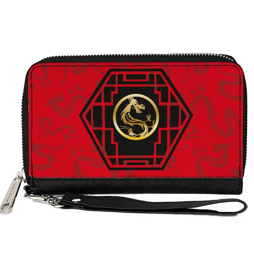 Women's PU Zip Around Wallet Rectangle - Mulan Mushu Cri-kee Lattice Mushu Icons Scattered Reds Black Golds