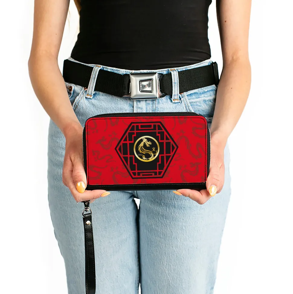 Women's PU Zip Around Wallet Rectangle – Mulan Mushu Cri-kee Lattice Mushu Icons Scattered Reds Black Golds