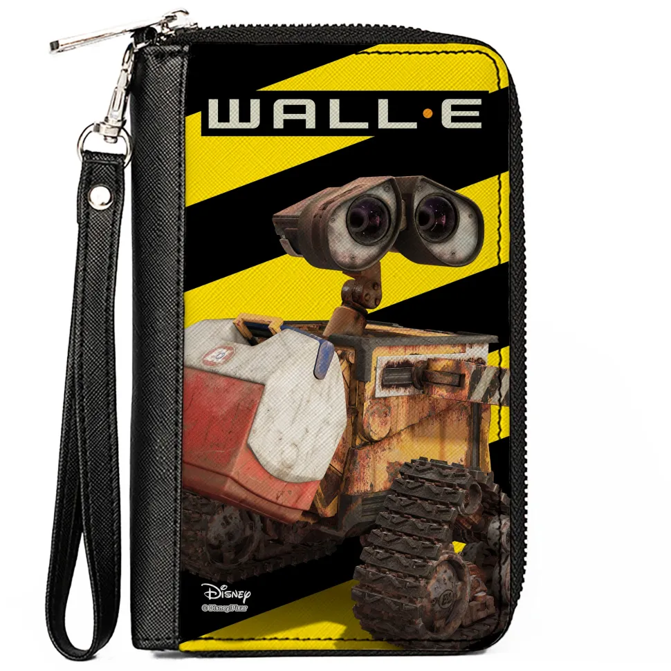 Women's PU Zip Around Wallet Rectangle - WALL-E Cooler Pose Warning Stripe Yellow Black