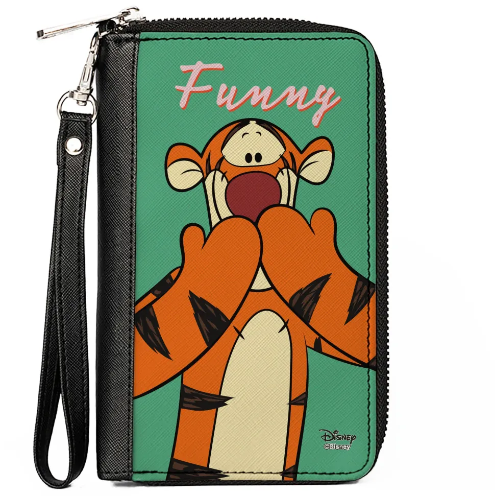 Women's PU Zip Around Wallet Rectangle - Winne the Pooh Tigger Smiling FUNNY Pose