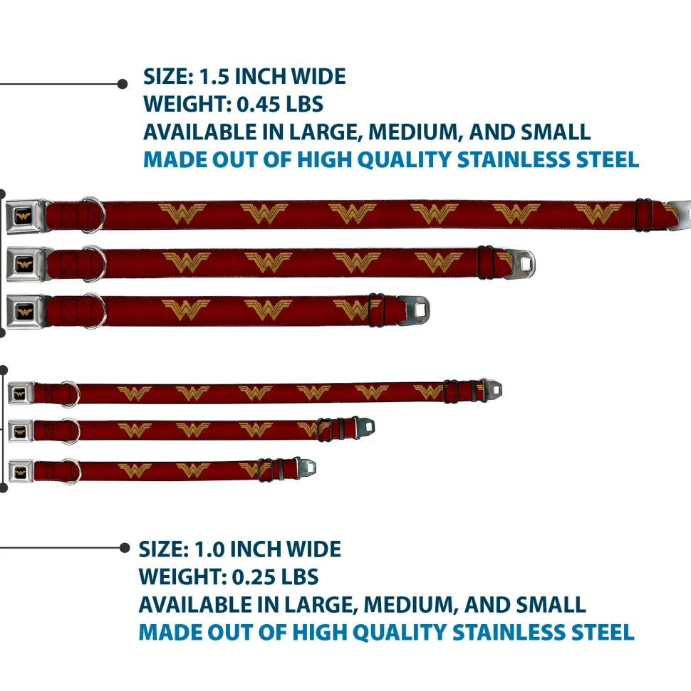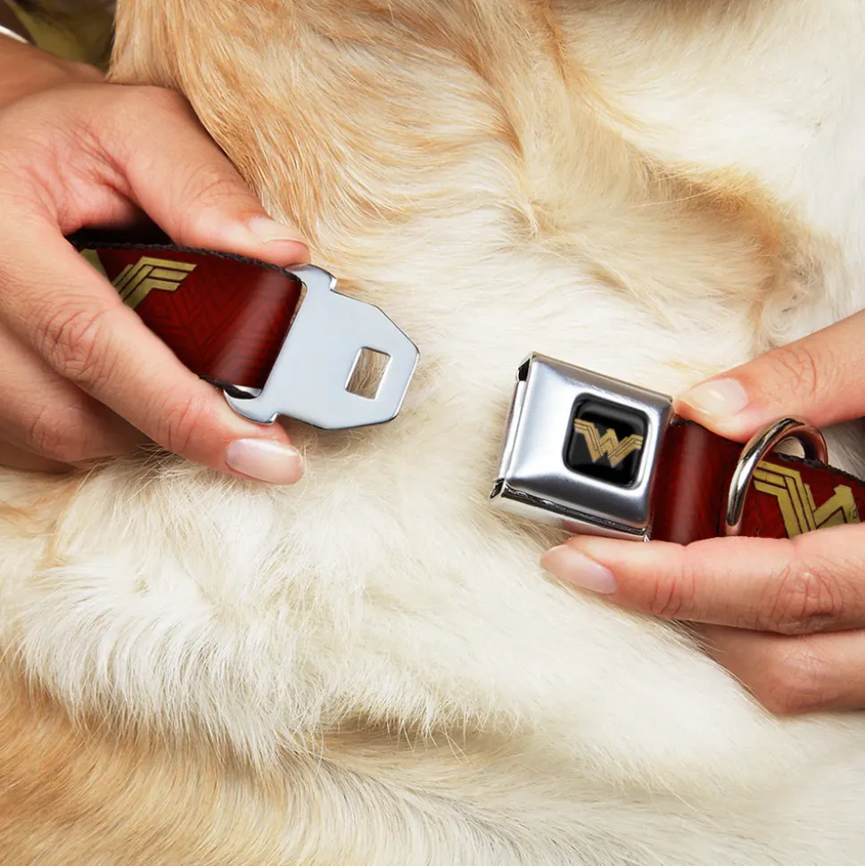 Your dog will be the talk of the town when people notice they’re wearing this awesome SeatBelt Dog Collar! Made from high-density polyester and durable steel components, this collar is built to last. It features beautiful vibrant artwork. The buckle is a miniature authentic SeatBelt Buckle, so you press the center button to release the clasp. This product is Made in USA by Buckle-Down Inc. and officially licensed by DC Comics.