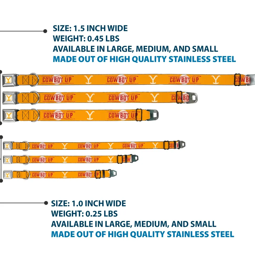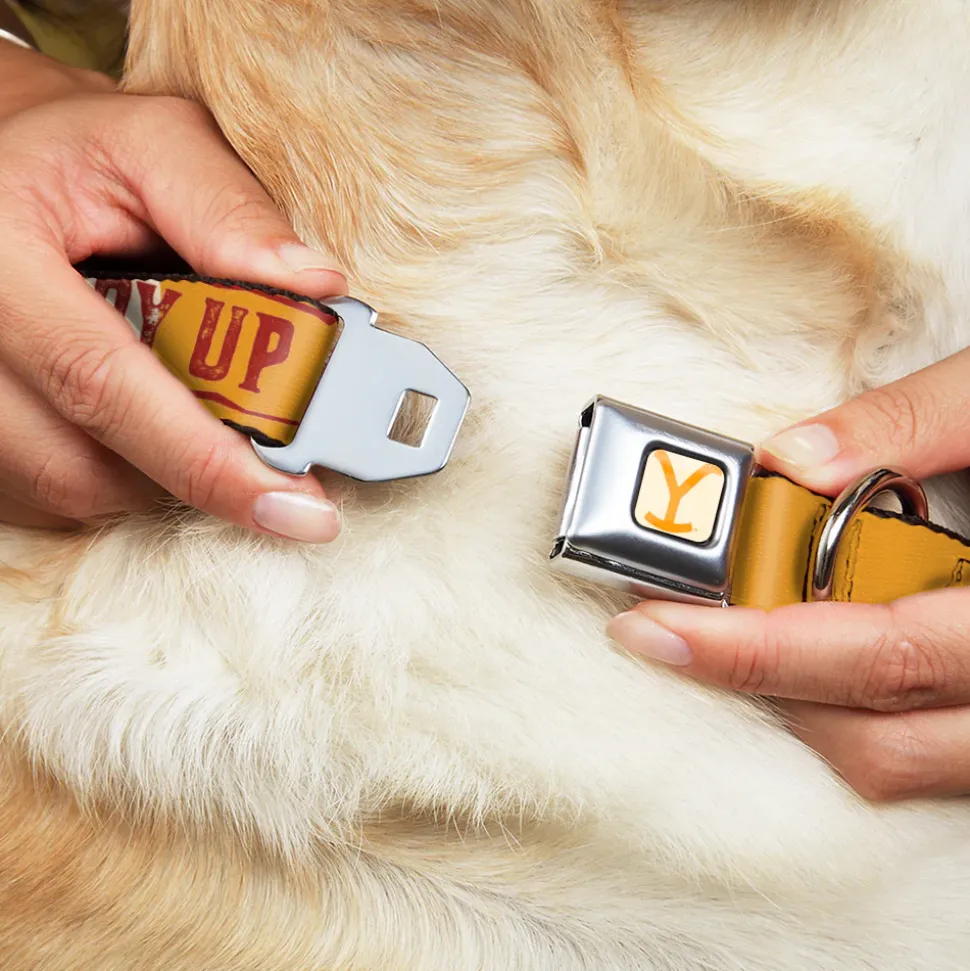 Your dog will be the talk of the town when people notice they’re wearing this awesome SeatBelt Dog Collar! Made from high-density polyester and durable steel components, this collar is built to last. It features beautiful vibrant artwork. The buckle is a miniature authentic SeatBelt Buckle, so you press the center button to release the clasp. This product is Made in USA by Buckle-Down Inc. and officially licensed by Paramount Network.