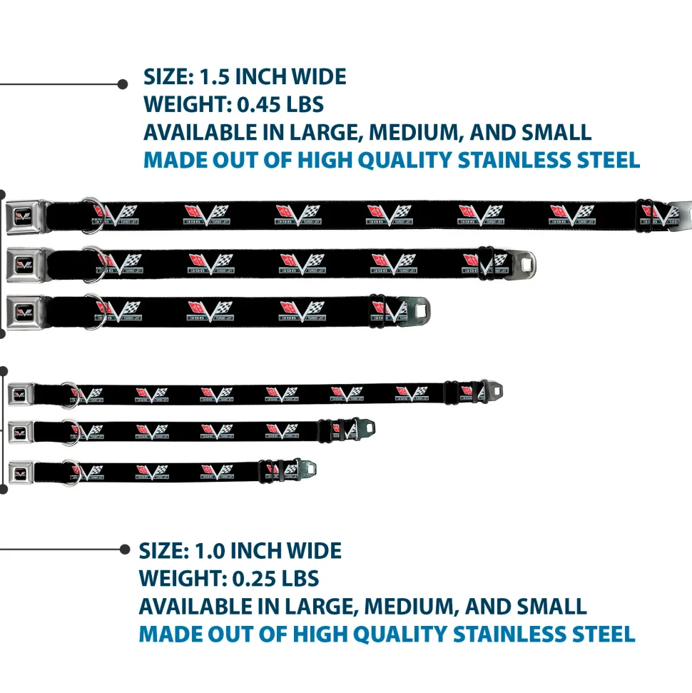 Your dog will be the talk of the town when people notice they’re wearing this awesome SeatBelt Dog Collar! Made from high-density polyester and durable steel components, this collar is built to last. It features beautiful vibrant artwork. The buckle is a miniature authentic SeatBelt Buckle, so you press the center button to release the clasp. This product is Made in USA by Buckle-Down Inc. and officially licensed by GM General Motors.