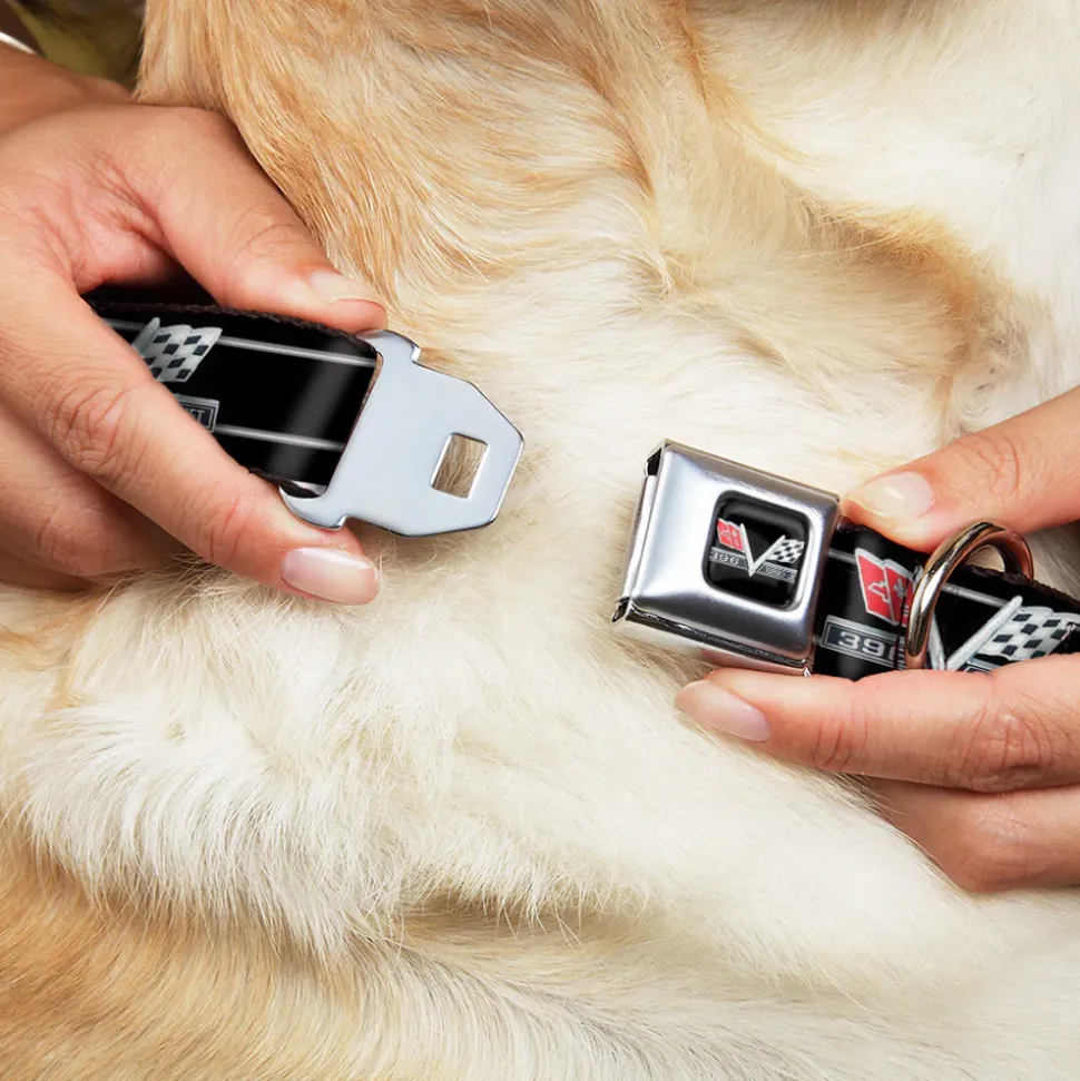 Your dog will be the talk of the town when people notice they’re wearing this awesome SeatBelt Dog Collar! Made from high-density polyester and durable steel components, this collar is built to last. It features beautiful vibrant artwork. The buckle is a miniature authentic SeatBelt Buckle, so you press the center button to release the clasp. This product is Made in USA by Buckle-Down Inc. and officially licensed by GM General Motors.