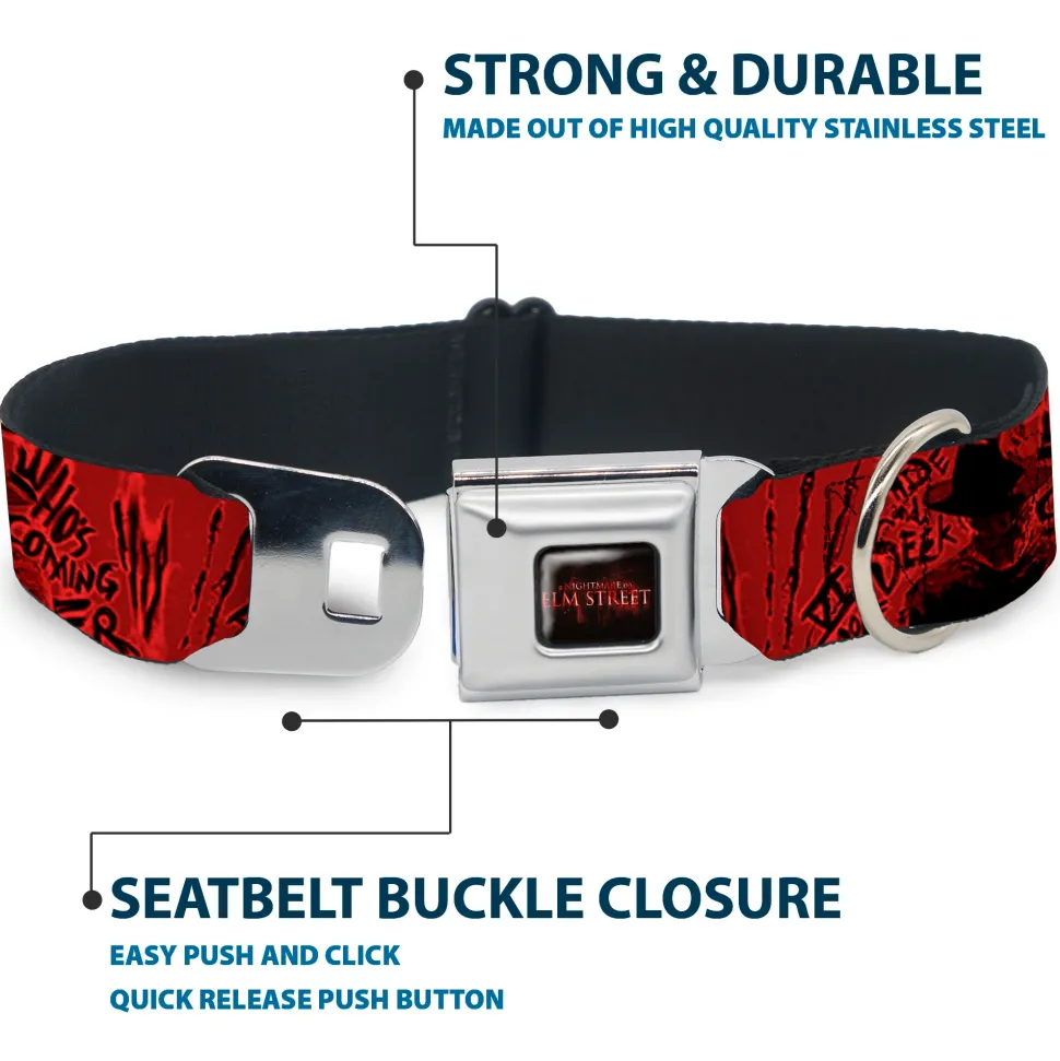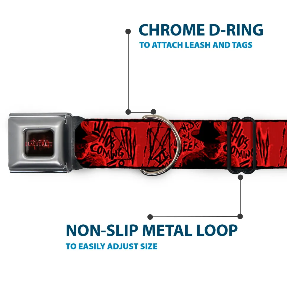 A NIGHTMARE ON ELM STREET Logo Full Color Black/Reds Seatbelt Buckle Collar – Freddy Poses/Quote Scrawls/Hand Scratching2 Reds/Black