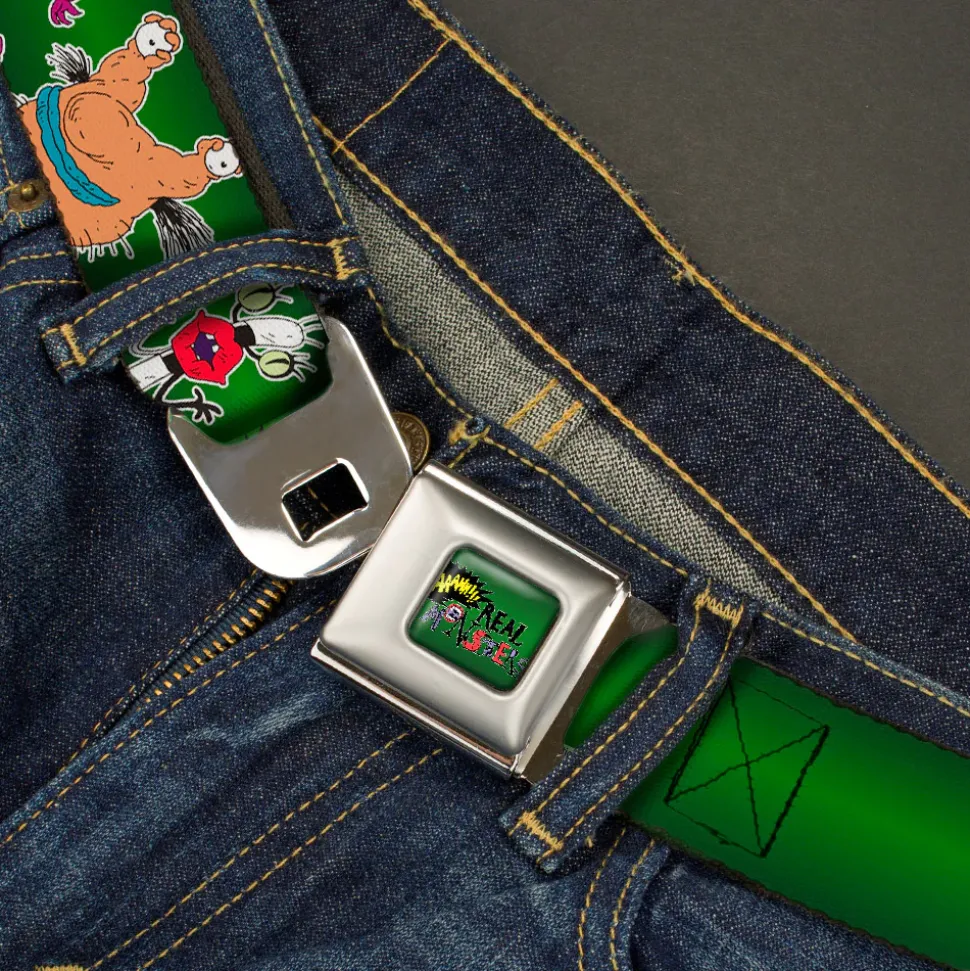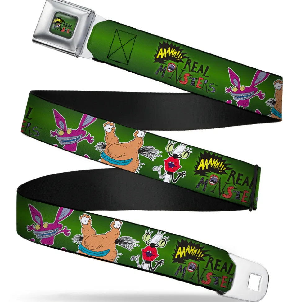 AAAHH!!! REAL MONSTERS Logo Full Color Green Seatbelt Belt – AAAHH!!! REAL MONSTERS Ickis/Krumm/Oblina Pose Green Webbing
