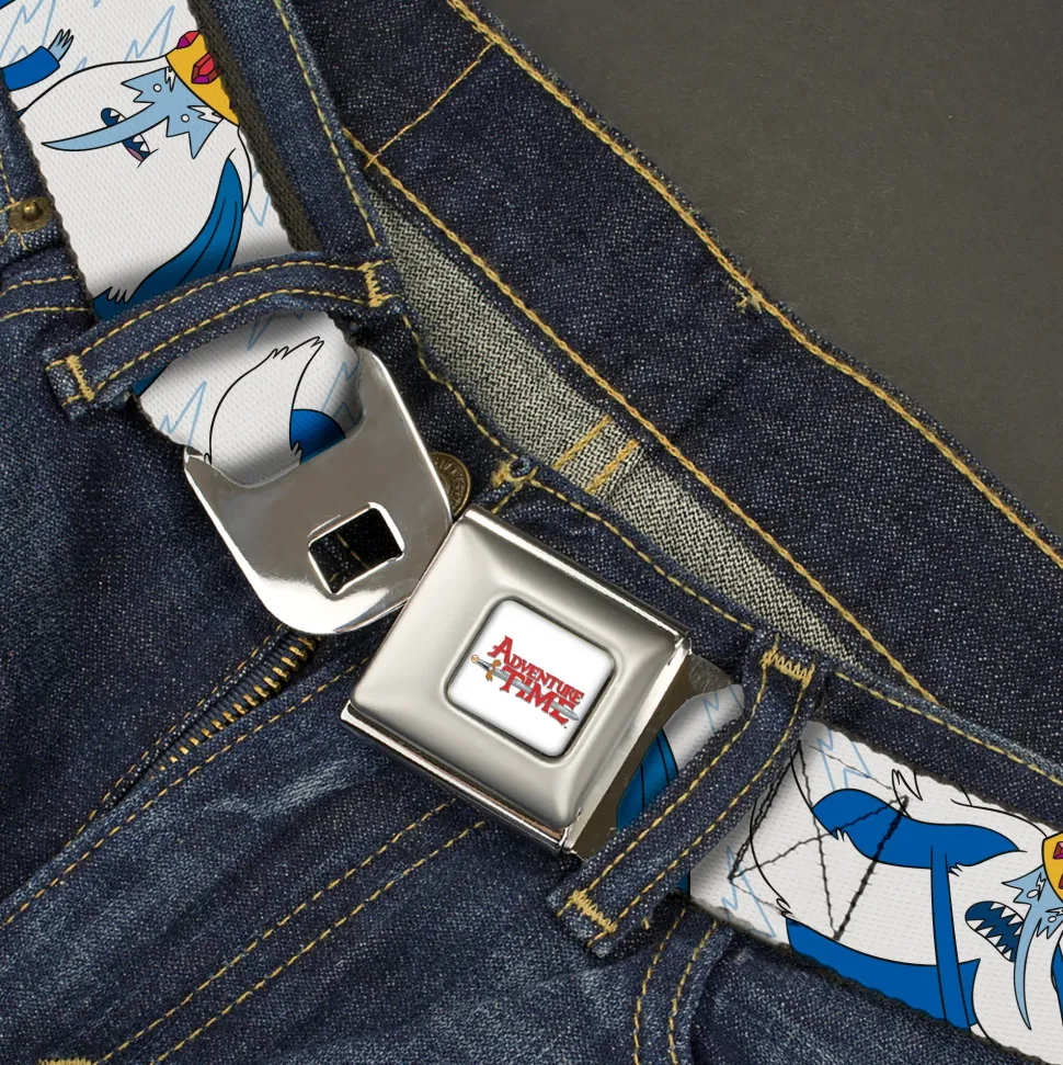 ADVENTURE TIME Title Logo Full Color White Seatbelt Belt – Adventure Time Ice King Poses and Bolts White/Blue Webbing