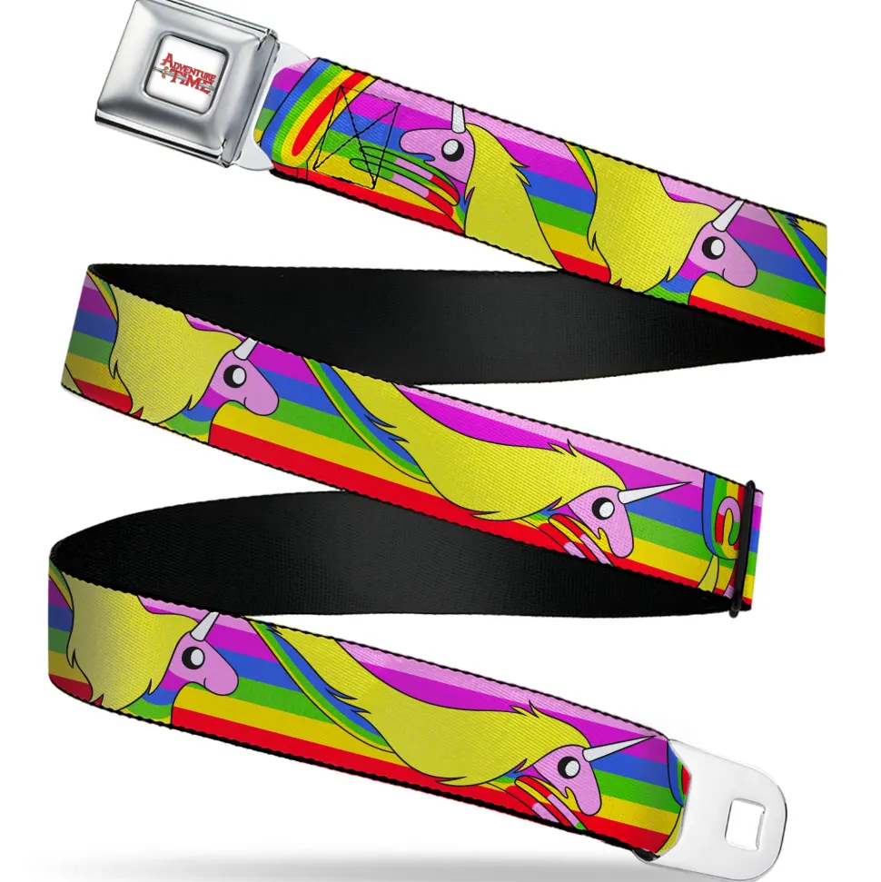 ADVENTURE TIME Title Logo Full Color White Seatbelt Belt – Adventure Time Lady Raincorn Poses Stripe Rainbow Webbing