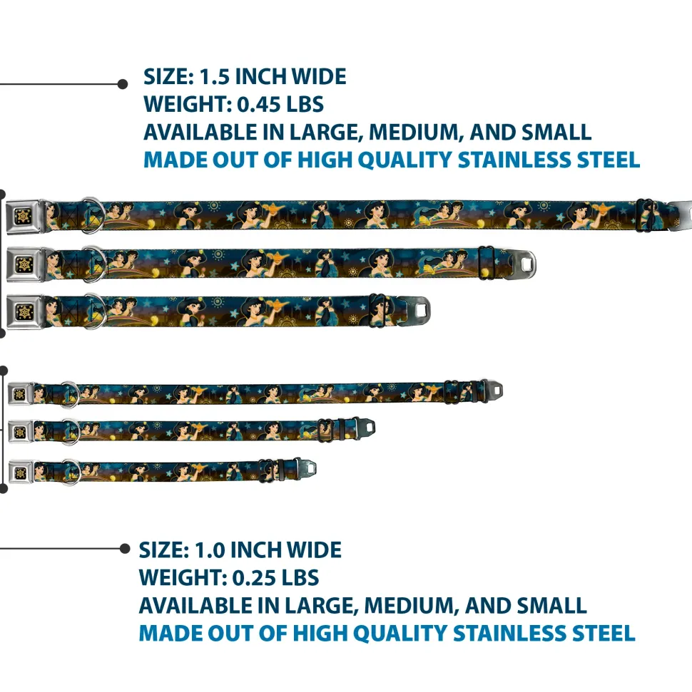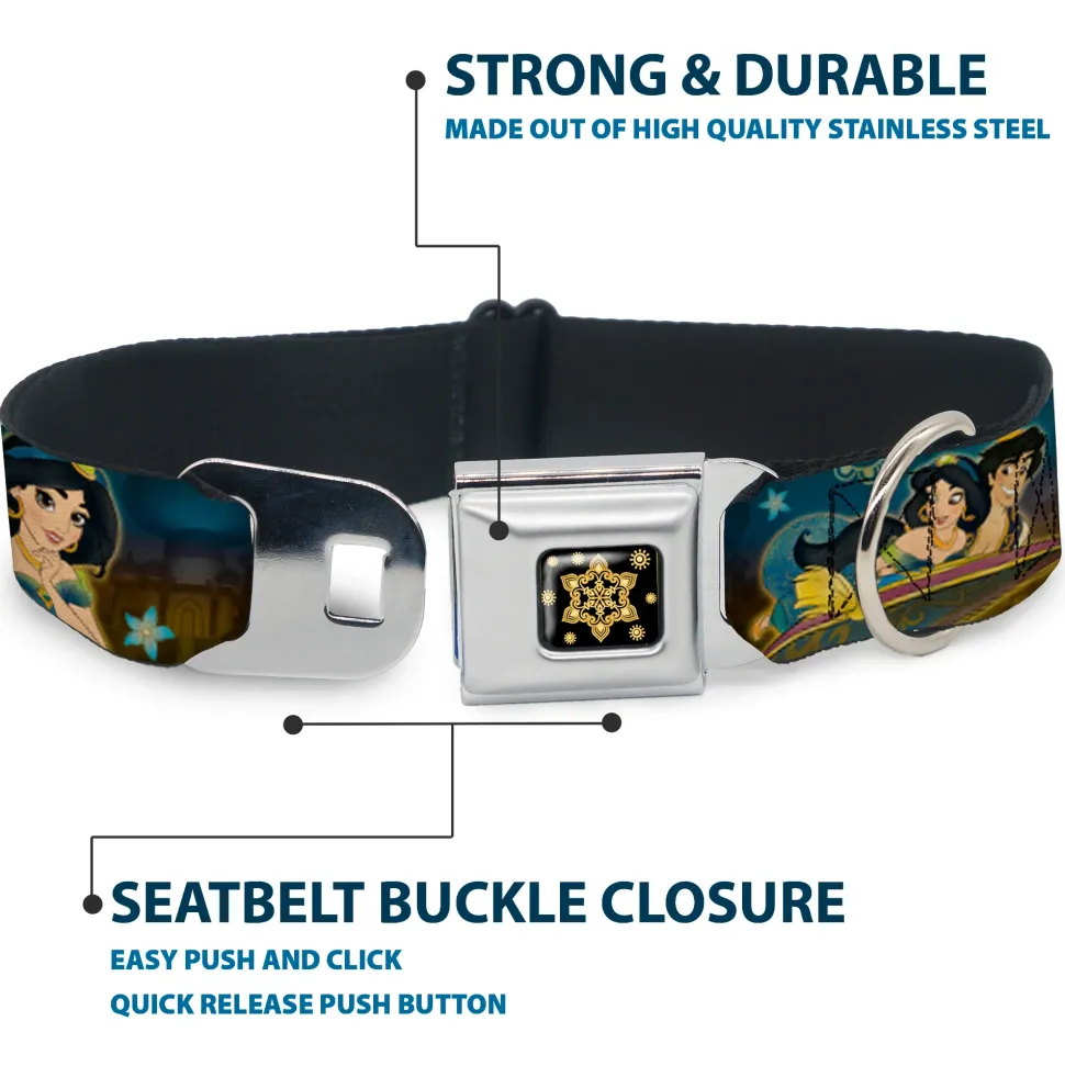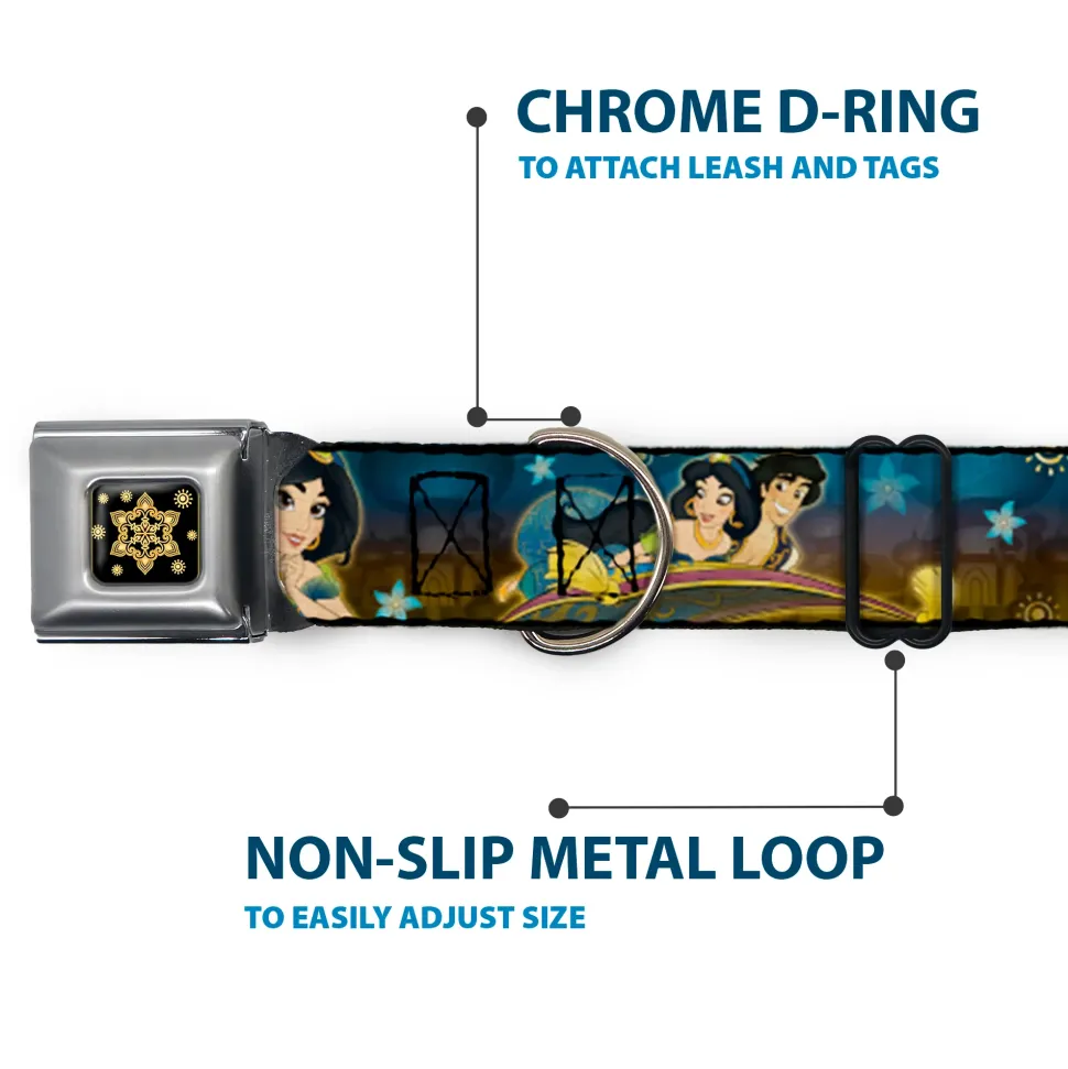 Aladdin Flower Motif Full Color Black/Gold Seatbelt Buckle Collar – Jasmine & Aladdin Carpet Ride/Jasmine Poses/Flowers
