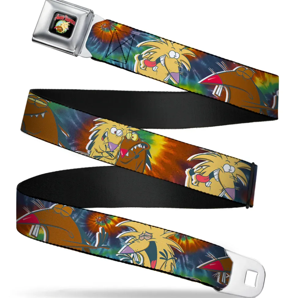 Angry Beavers Logo Full Color Black Seatbelt Belt – Daggett & Norbert Poses2 Tie Dye Webbing