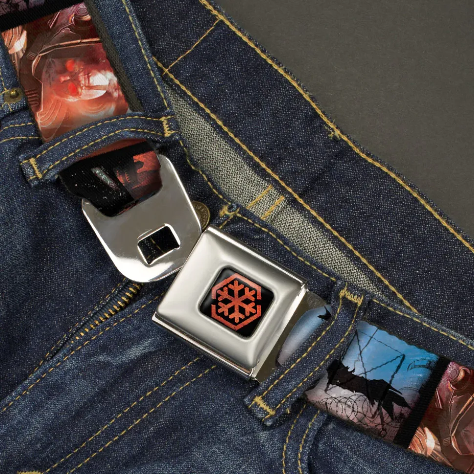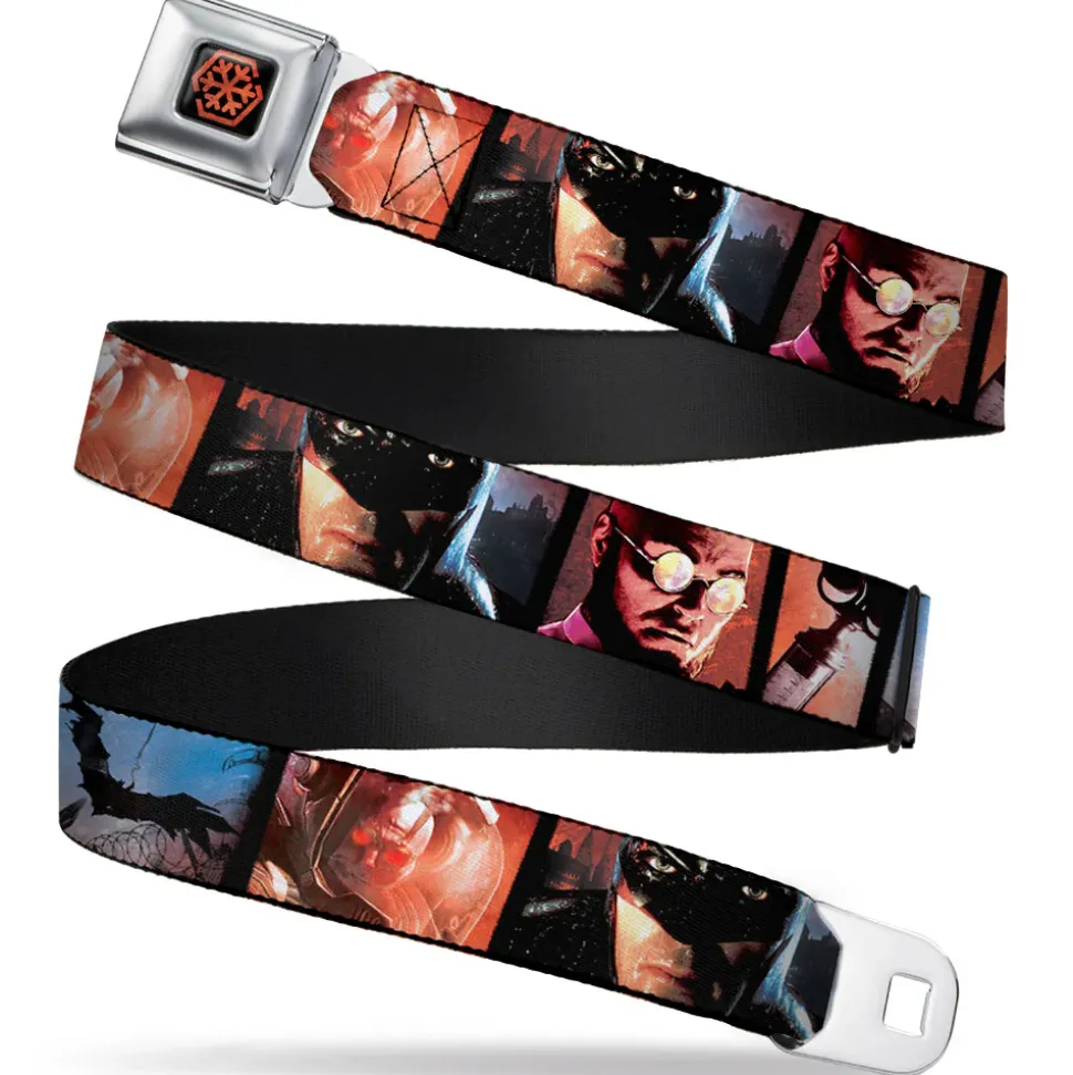 Arkham City Snowflake Full Color Black Red Seatbelt Belt – Batman Arkham City 3-Character/2-Scene Panels Webbing