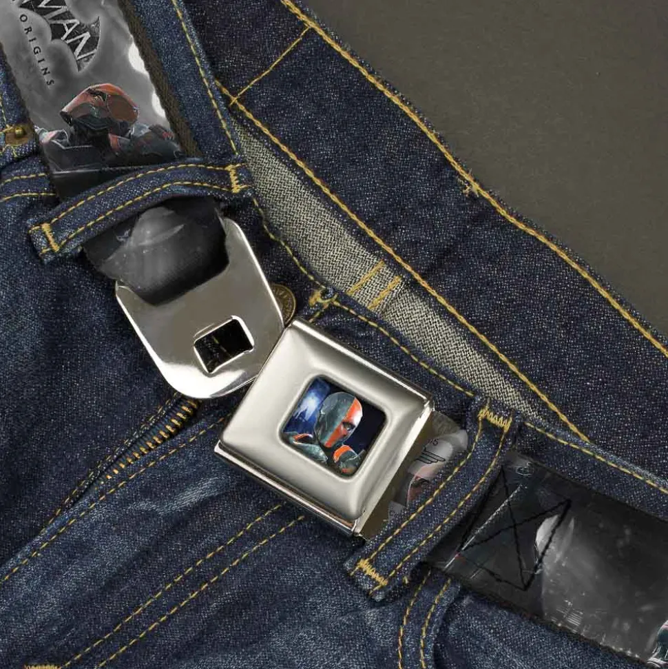 Arkham Origins Deathstroke Face CLOSE-UP Full Color Seatbelt Belt – BATMAN ARKHAM ORIGINS Deathstroke 3-Poses/Batman Battle Scene Grays/Reds Webbing