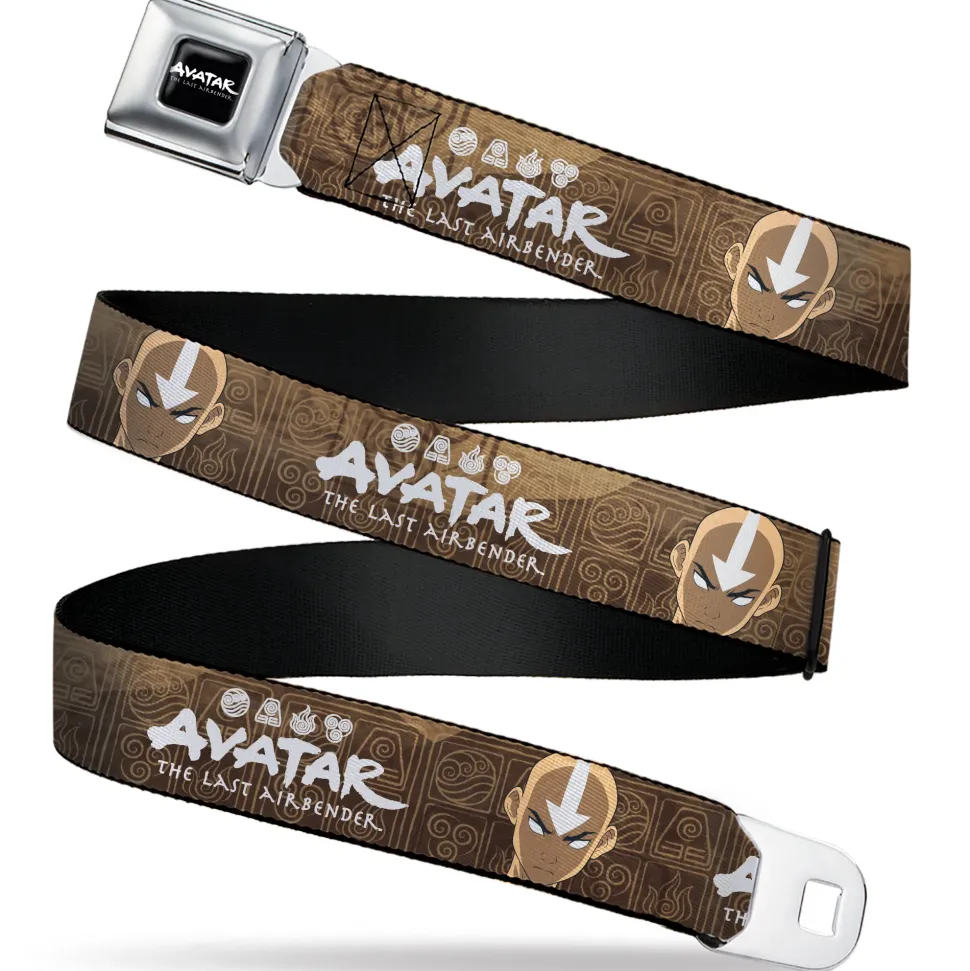Avatar the Last Airbender Aang Face Close-Up Full Color Seatbelt Belt – AVATAR THE LAST AIRBENDER Aang Face Close-Up and Title Logo Tans/White Webbing