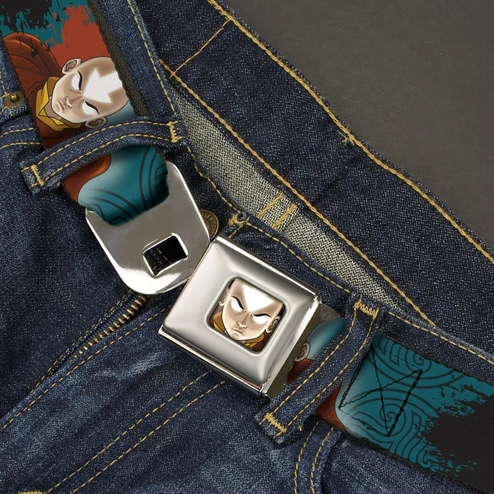 Avatar the Last Airbender Aang Face Close-Up Full Color Seatbelt Belt – AVATAR THE LAST AIRBENDER Aang Pose and Title Logo Blues/White Webbing