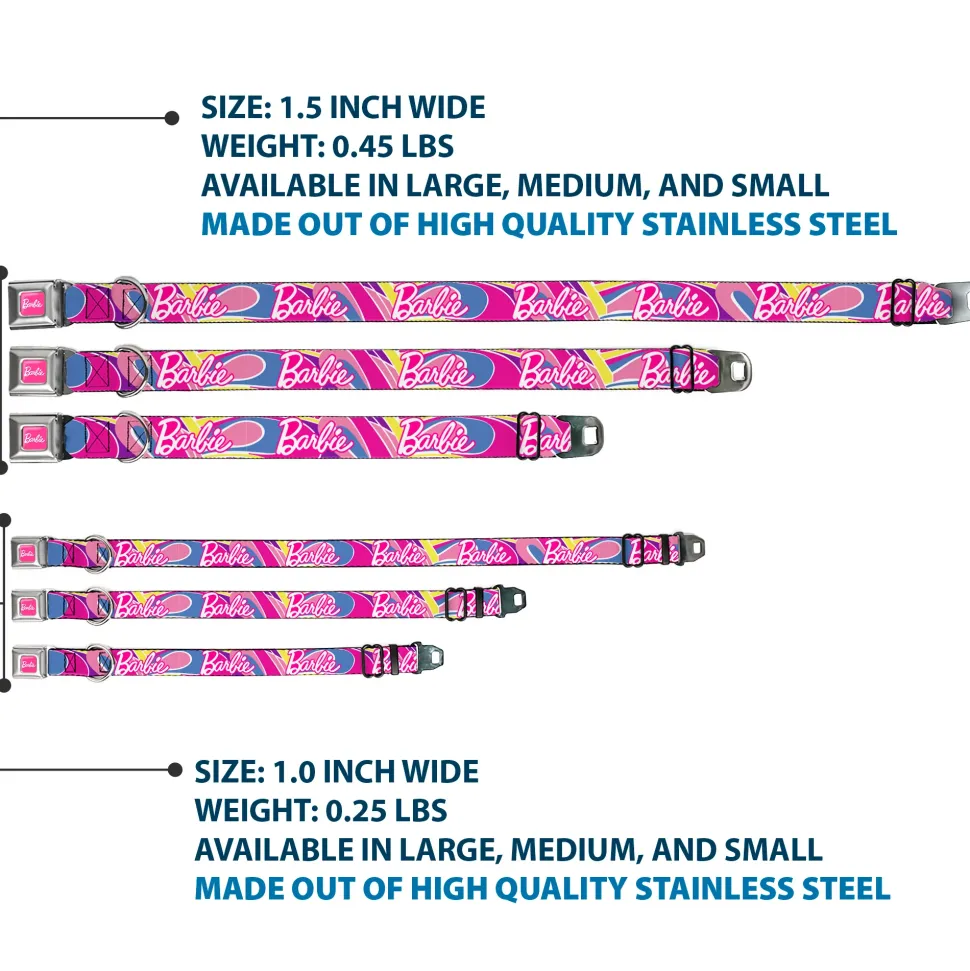 Your dog will be the talk of the town when people notice they’re wearing this awesome SeatBelt Dog Collar! Made from high-density polyester and durable steel components, this collar is built to last. It features beautiful vibrant artwork. The buckle is a miniature authentic SeatBelt Buckle, so you press the center button to release the clasp. This product is assembled in the USA by Buckle-Down Inc. and officially licensed by Mattel.